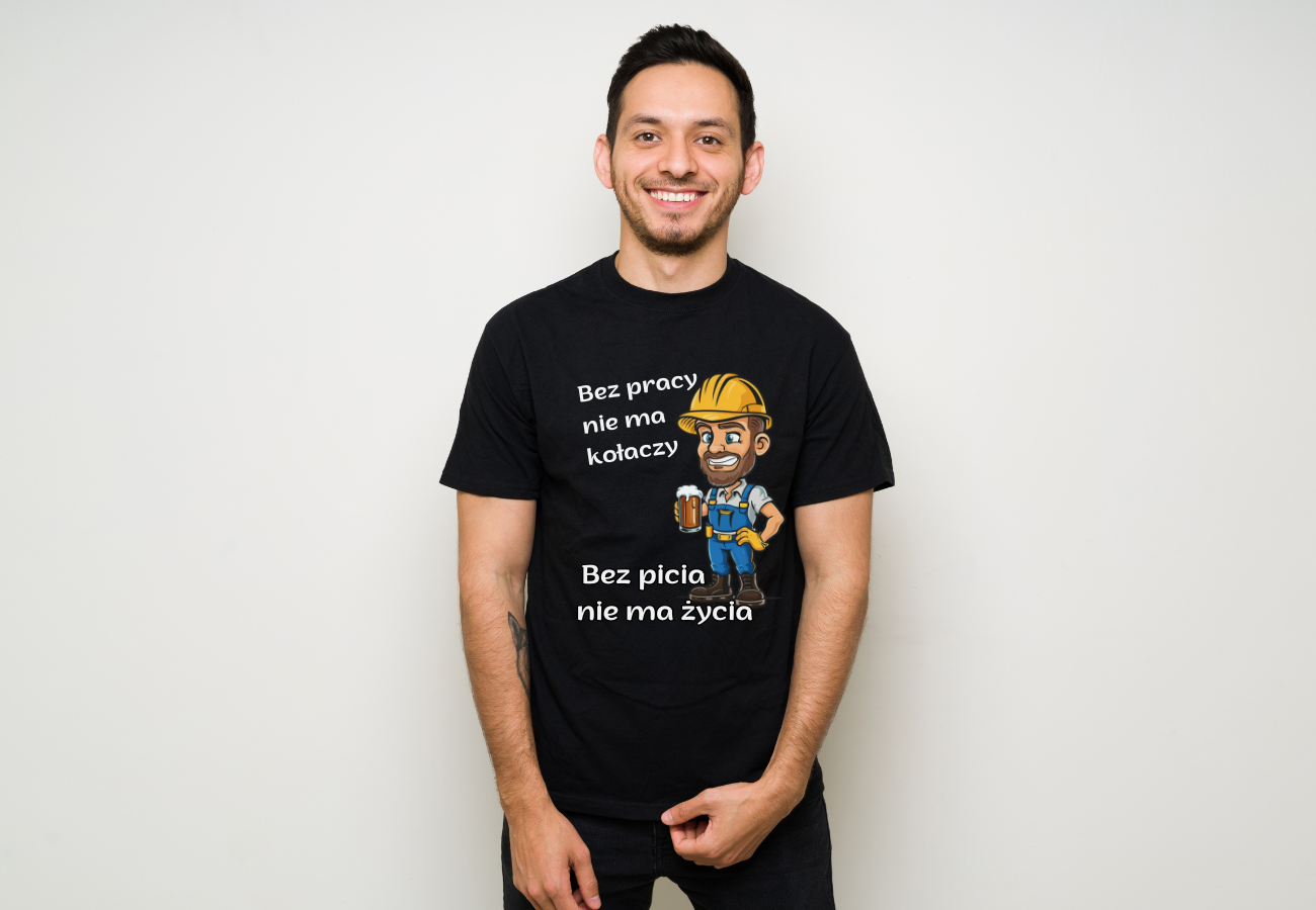 Koszulka "Bez Picia Nie Ma Życia" - bo życie to nie tylko praca, ale także chwile relaksu i radości. Idealna dla tych, którzy cenią sobie dobrą zabawę i niezwykłe chwile spędzone z przyjaciółmi przy ulubionym napoju.