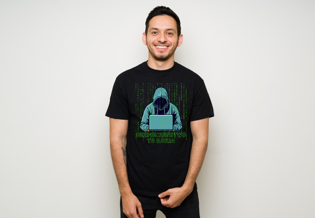 Koszulka "Bezpieczeństwo To Iluzja" to idealny wybór dla każdego hakera. Grafika przedstawia hakera w kapturze, podkreślając ducha cyfrowej rebelii i wyzwania dla konwencjonalnych zasad bezpieczeństwa. Wyraź swoją pasję i zadziorność tym wyjątkowym designem!