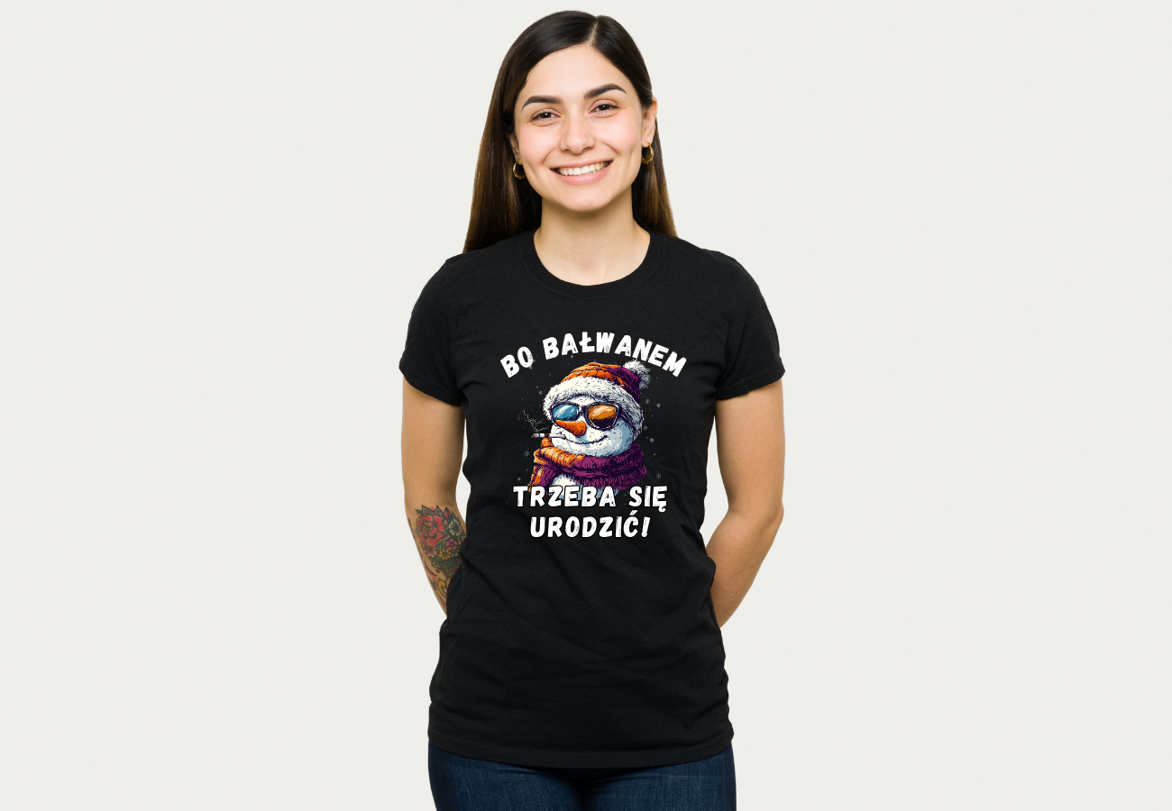 Koszulka "Bo Bałwanem Trzeba Się Urodzić" to zabawny i oryginalny wybór na zimowe dni. Humorystyczny nadruk z bałwanem doda świątecznego klimatu i wywoła uśmiech na każdej twarzy. Idealna na prezent lub jako element świątecznego stroju!