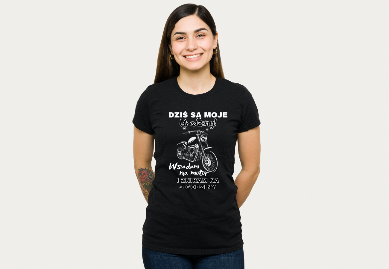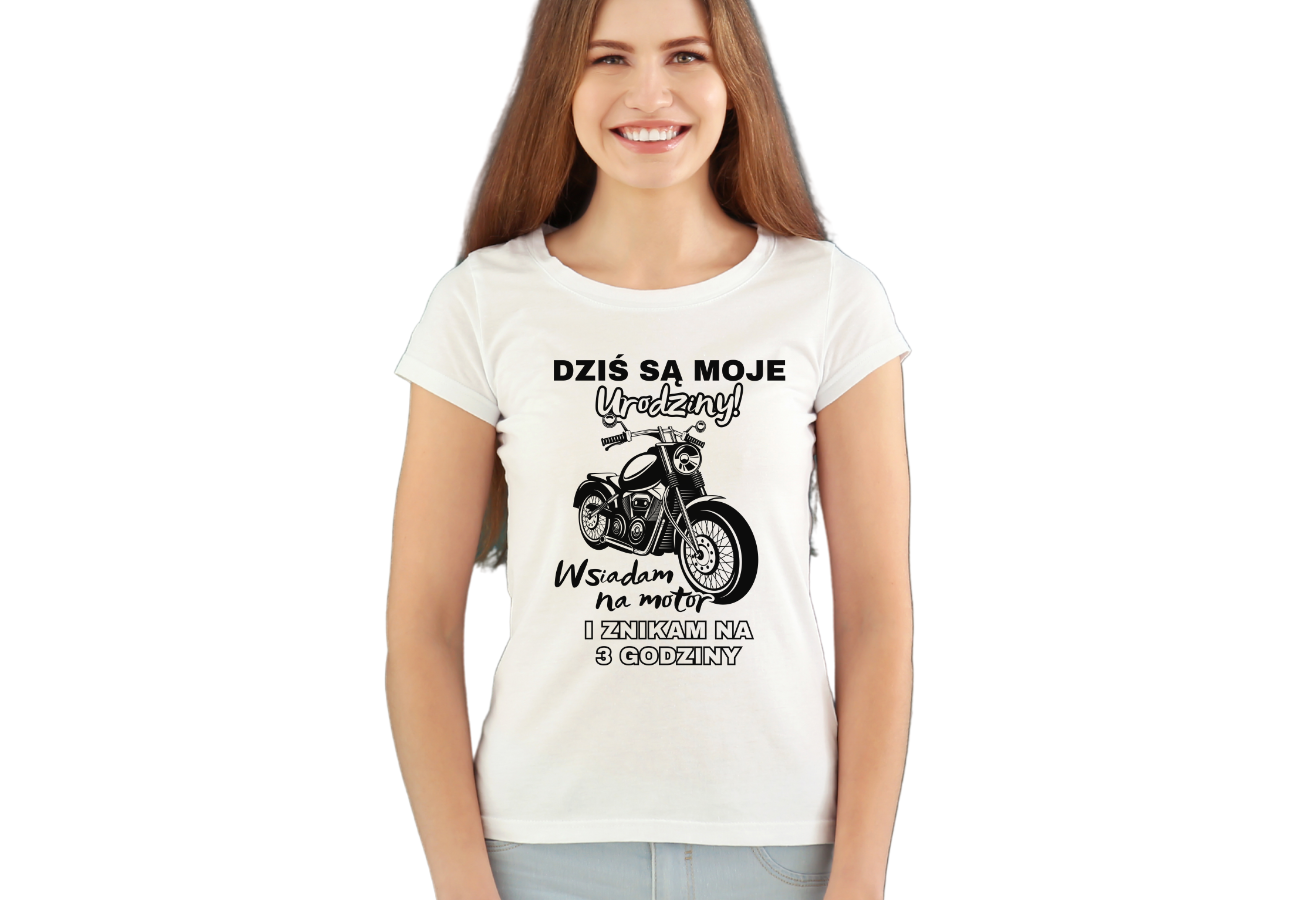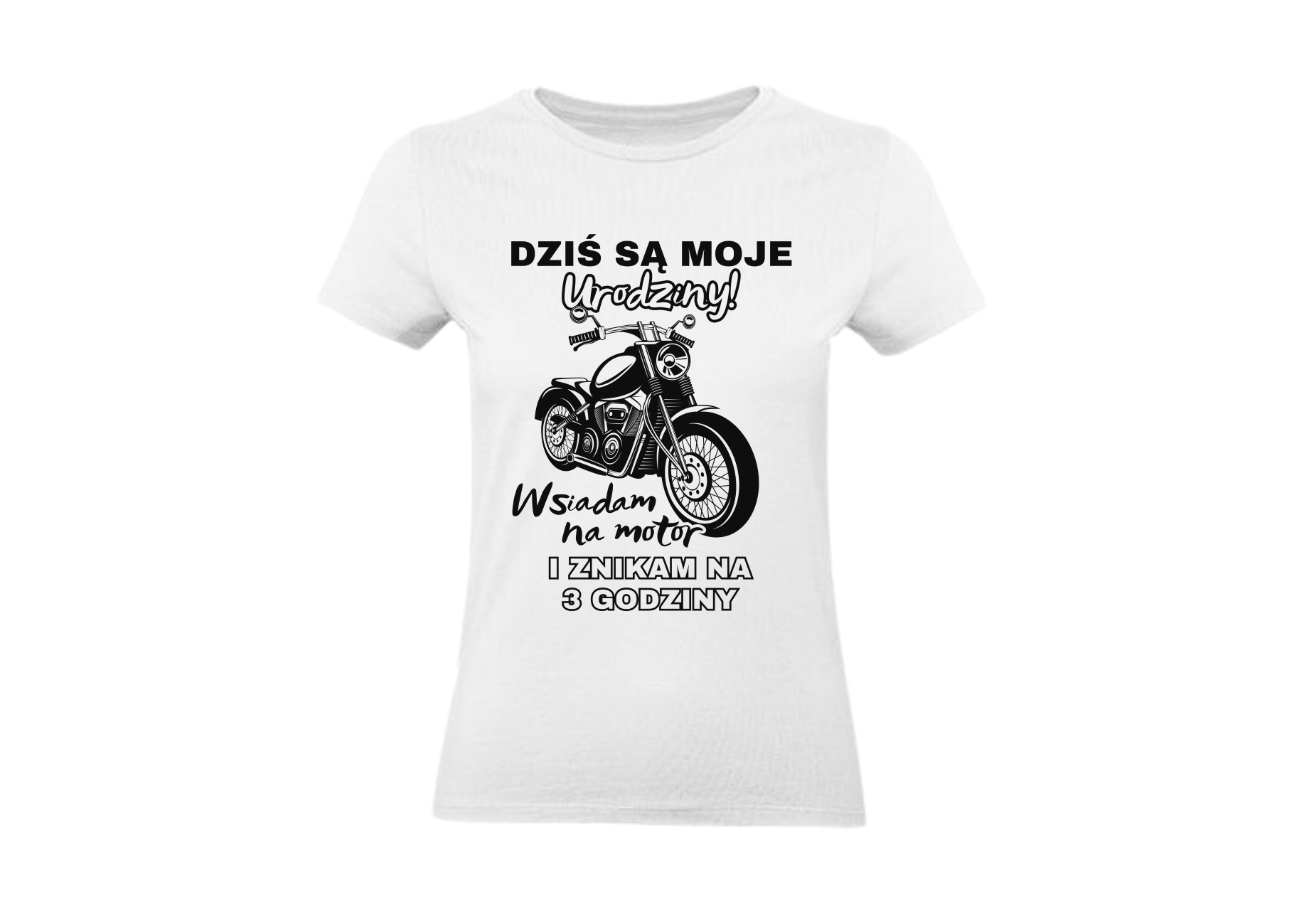 Koszulka "Dziś są moje urodziny, wsiadam na motor i znikam na 3 godziny" to idealny prezent dla miłośniczek motocykli, które chcą celebrować swoje urodziny w wyjątkowy sposób. Podkreśl swoją pasję do jazdy na motorze i dodaj do tego odrobinę humoru!
