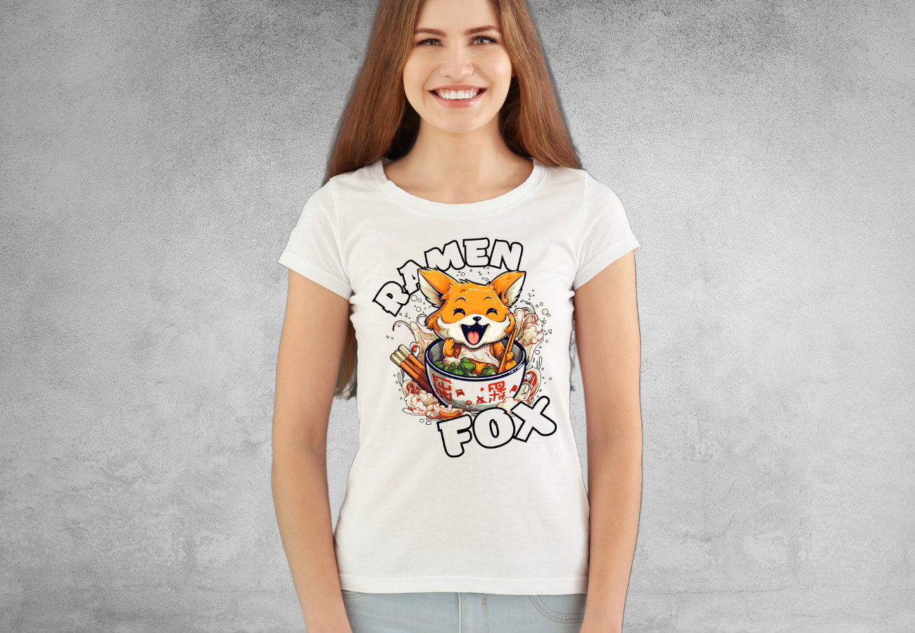 Na tej koszulce widoczny jest uroczy lis, wygodnie usadowiony w misce pełnej aromatycznego ramenu. Trzyma w swojej łapce pałeczki gotowe do zanurzenia w tych smakowitych nitkach. Ta "Koszulka Funny Ramen Fox"