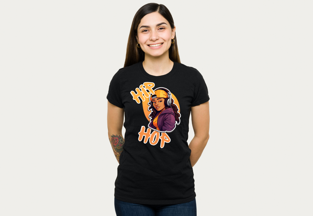 Koszulka Hip-Hop Woman to doskonała propozycja dla fanek muzyki rap i kultury hip-hopowej. Grafika przedstawia wizerunek raprki o afrykańskim pochodzeniu oraz napis "Hip-Hop" który dodaje energii i stylu. Ta koszulka to modny sposób na wyrażenie pasji do rapu i hip-hopu. Bądź częścią tej niesamowitej społeczności!