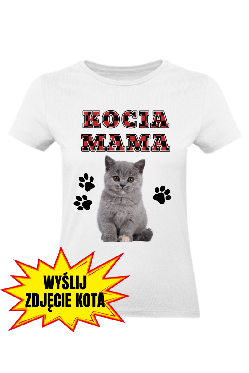 Koszulka Damska "Kocia Mama z Własnym Kotem" to idealny sposób, aby wyrazić swoją miłość do futrzanych przyjaciół. Prześlij zdjęcie swojego kota, a my umieścimy je na koszulce, tworząc unikalny i spersonalizowany design. Pokaż wszystkim, jak bardzo kochasz swojego mruczka!