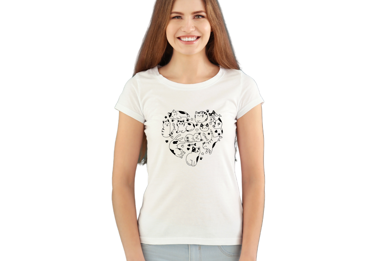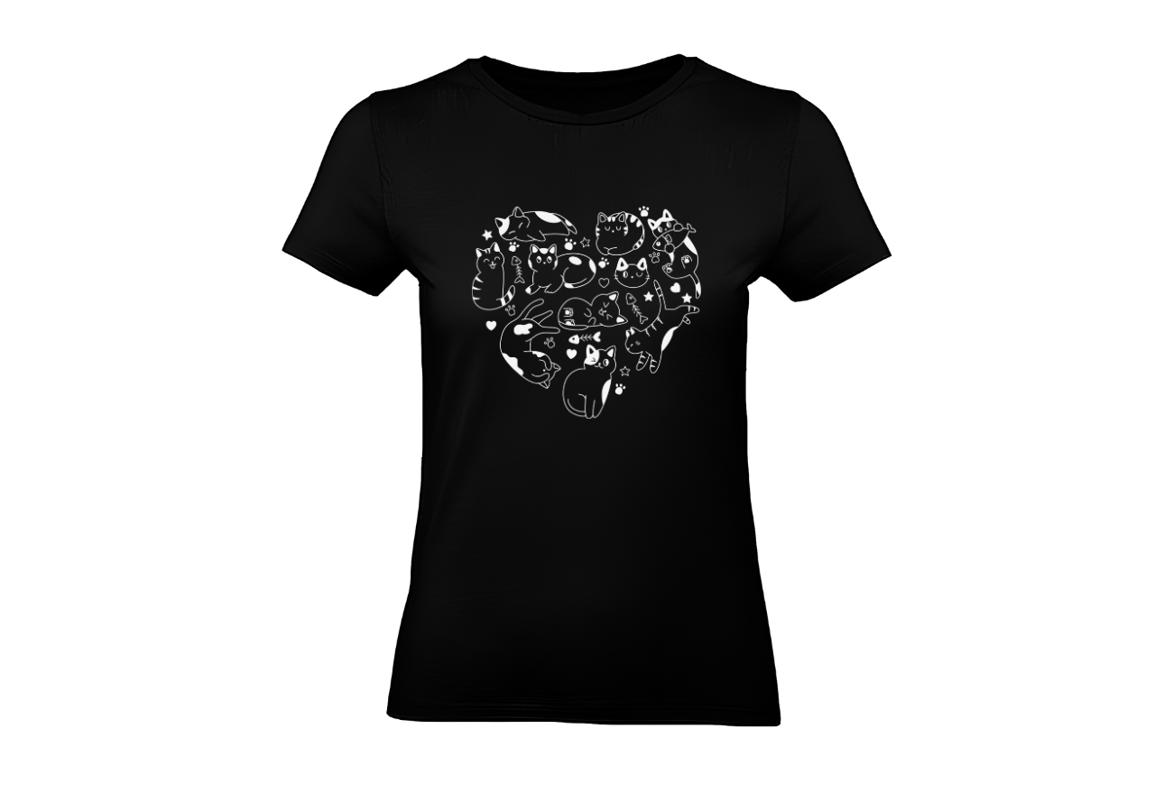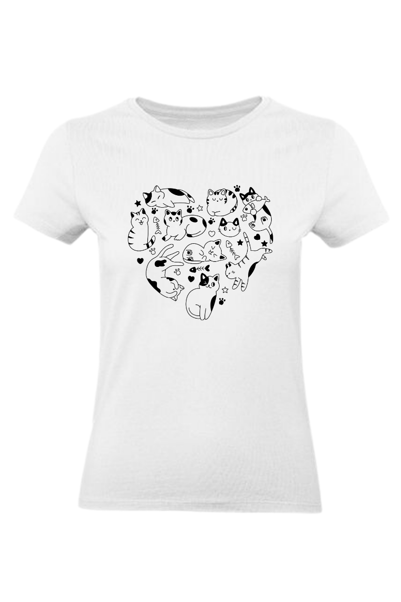 Ta urocza koszulka prezentuje serce, które składa się z narysowanych kotów, podkreślając miłość i oddanie do tych uroczych zwierząt. To idealny sposób, aby wyrazić swoją pasję do kotów i uczynić Twój strój wyjątkowym.