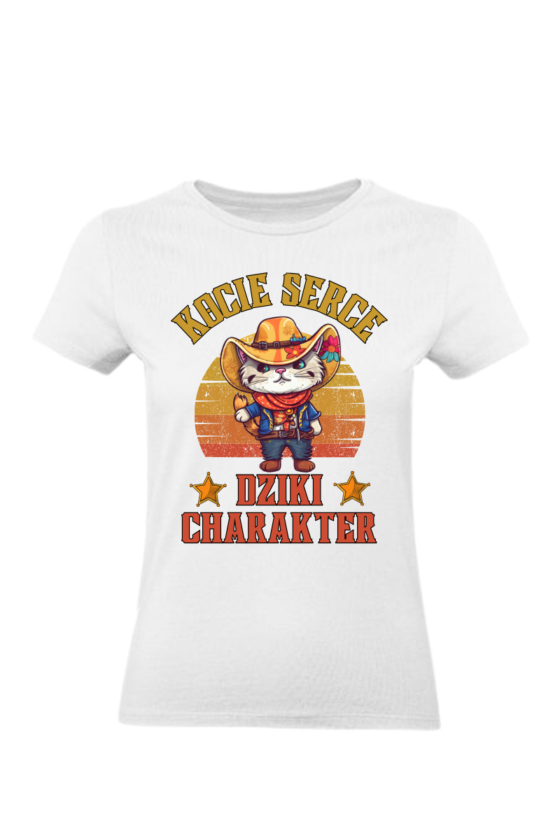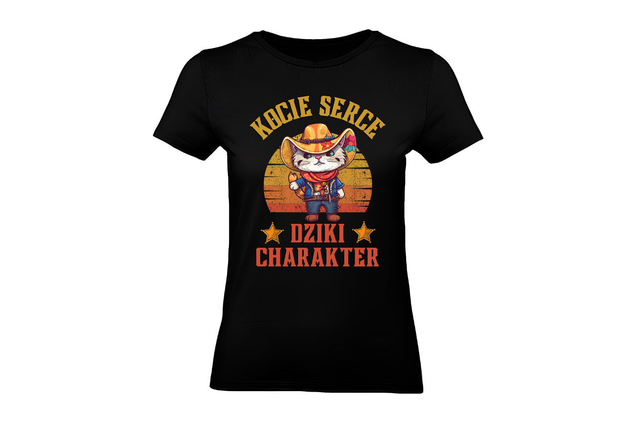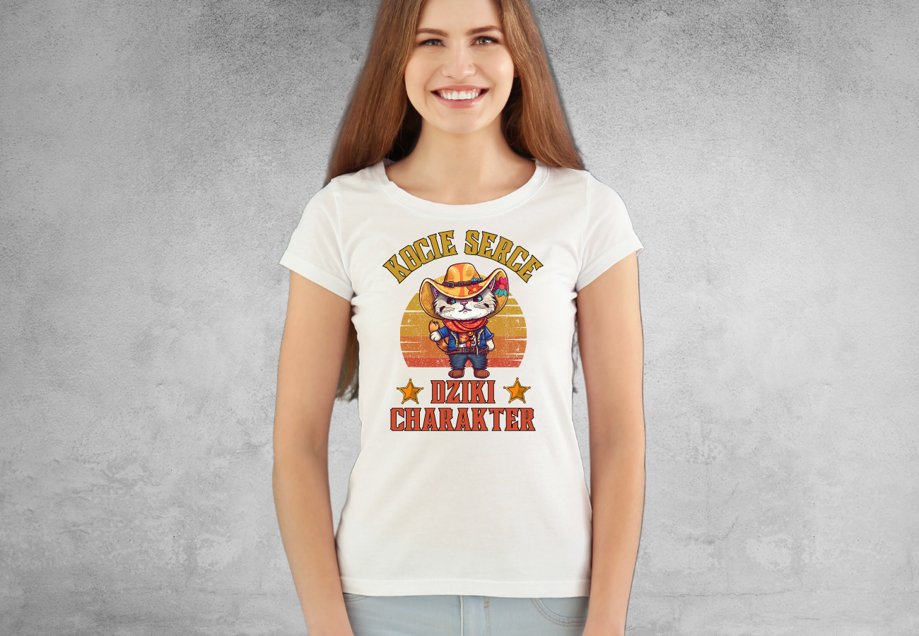 Ta koszulka to prawdziwy hołd dla odważnych dusz, które łączą w sobie kocie serce - pełne czułości i niezwykłej delikatności - z dzikim charakterem, gotowym do pokonywania każdego wyzwania. Jeśli jesteś gotowa wyruszyć na Dziki Zachód swojego życia, ta koszulka jest dla Ciebie.