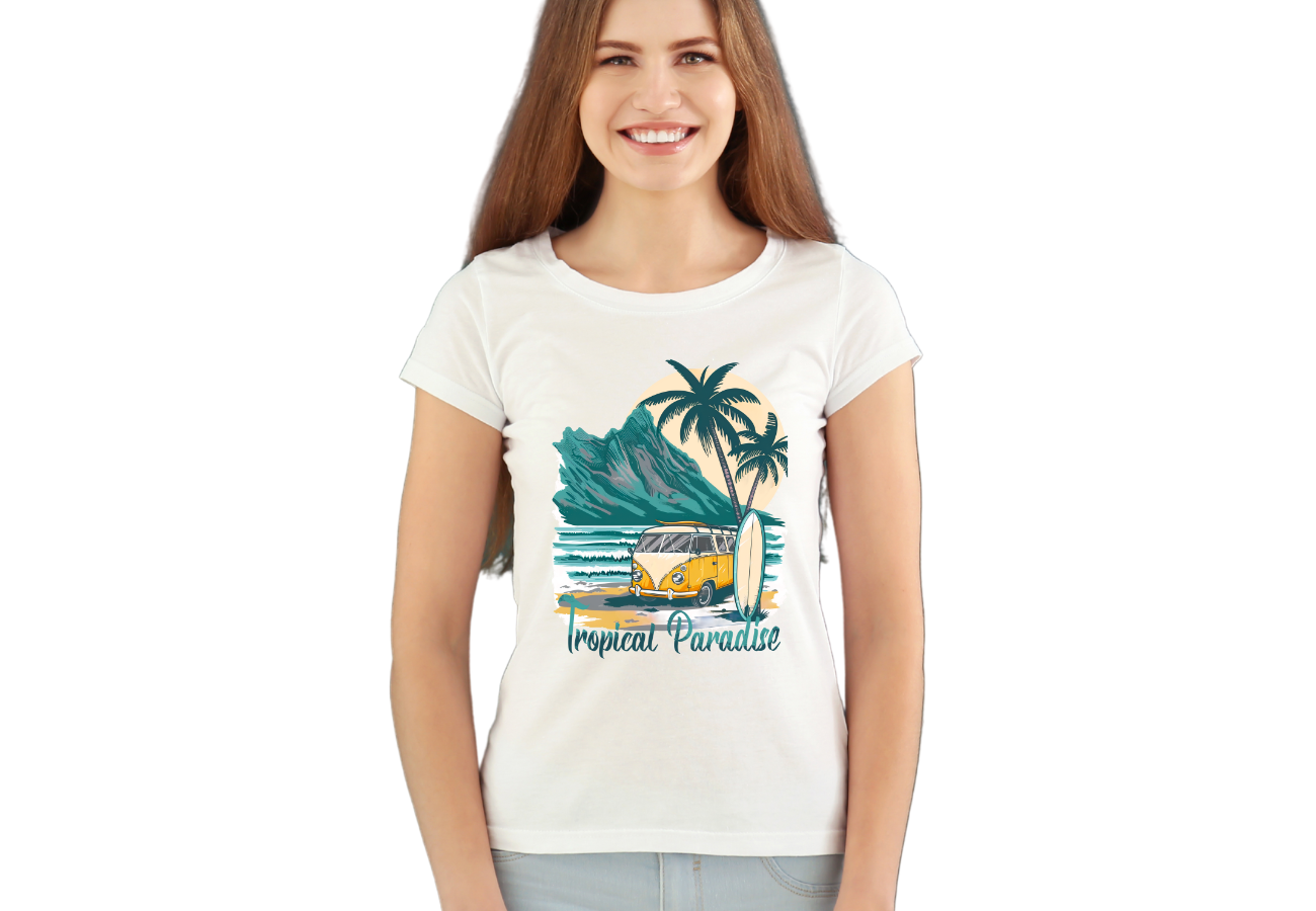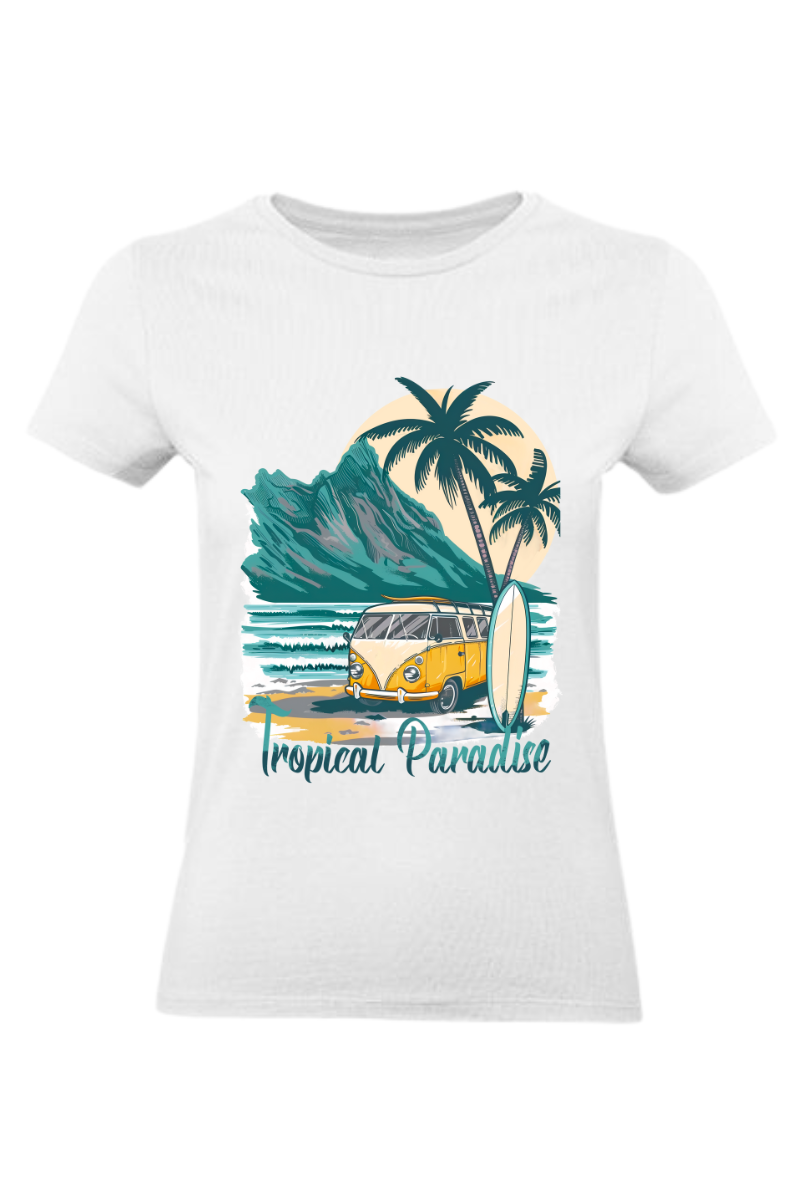 Koszulka "Lato, Wakacje, Tropical Paradise" to perfekcyjny wybór na letnie przygody. Wyraża miłość do tropikalnych miejsc i wakacyjnego relaksu. Ubierz ją na słoneczne dni i poczuj się jak w raju!