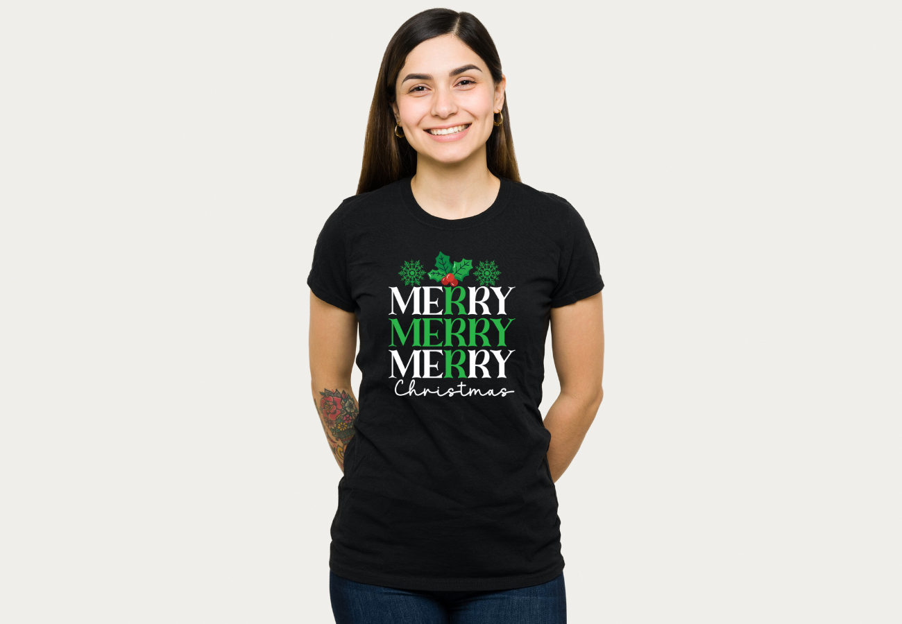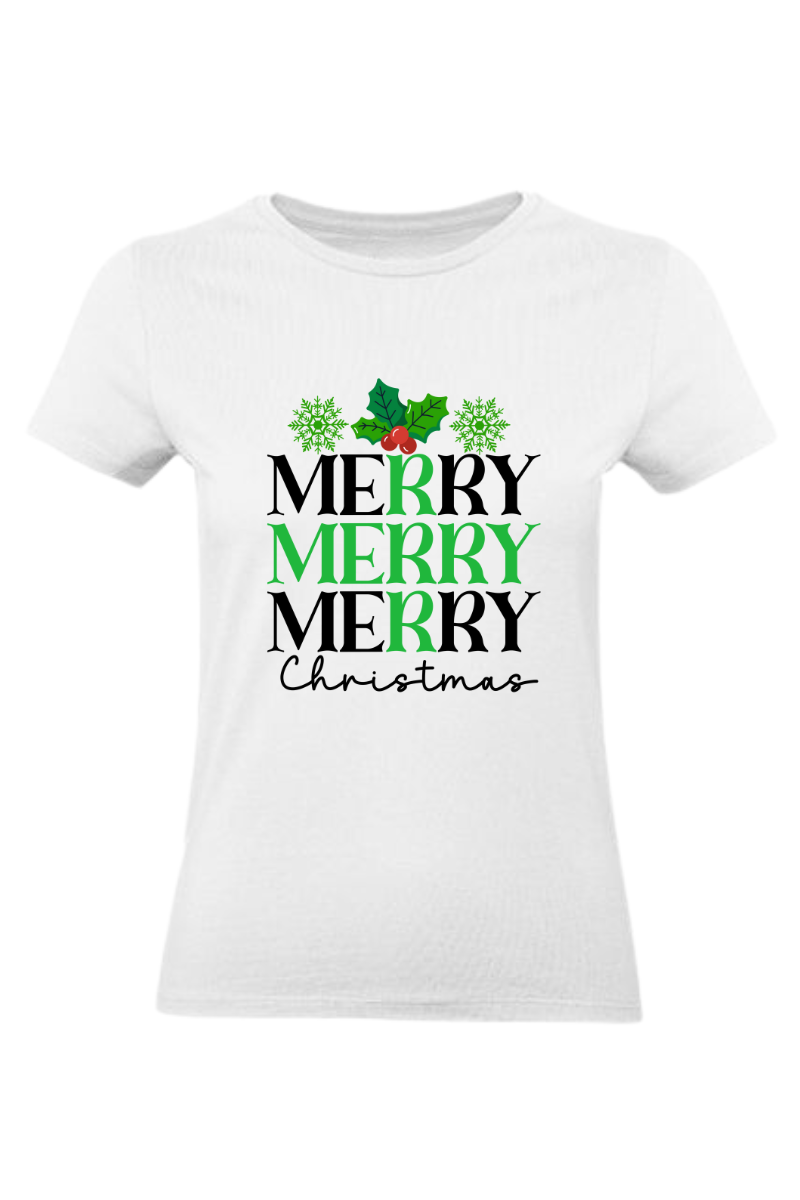 Koszulka "Merry Merry Merry Christmas" to pełna radości i świątecznego entuzjazmu propozycja na czas Bożego Narodzenia. Z trzema radosnymi "Merry", ta koszulka podkreśla atmosferę radosnego świętowania. To idealna koszulka, aby wyrazić swoją radość i uczestniczyć w magii świąt Bożego Narodzenia.