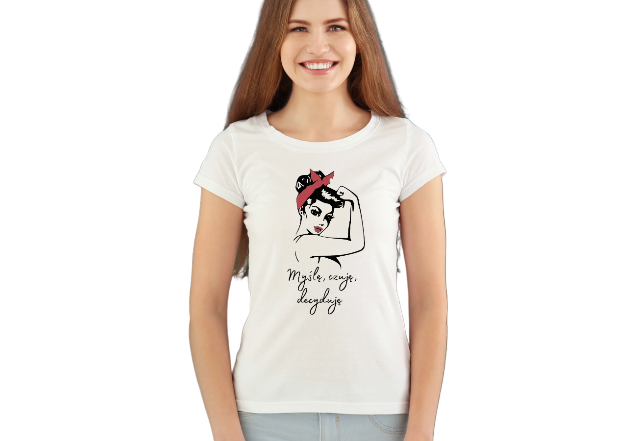 Koszulka Damska "Myślę, Czuję, Decyduję" to manifest Twojej siły i niezależności. To wyrażenie Twojej zdolności do samodzielnego myślenia, wyrażania uczuć i podejmowania decyzji. Ta koszulka jest pełna inspiracji dla innych, by byli pewni siebie i odważni w podejmowaniu własnych wyborów. Teraz możesz nosić swoją pewność siebie z dumą i stylem!