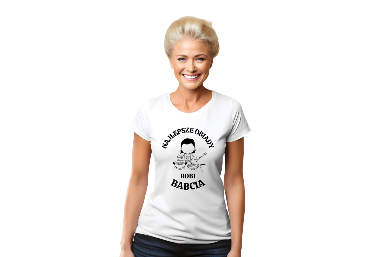 Koszulka Damska na Dzień Babci: "Najlepsze Obiady Robi Babcia". To uroczy sposób na wyrażenie szacunku i miłości do babci, której obiady są niezapomniane. Niech ta koszulka stanowi wyjątkowy prezent, podkreślając, że najlepsze smaki rodzą się w domu Twojej ukochanej babci!