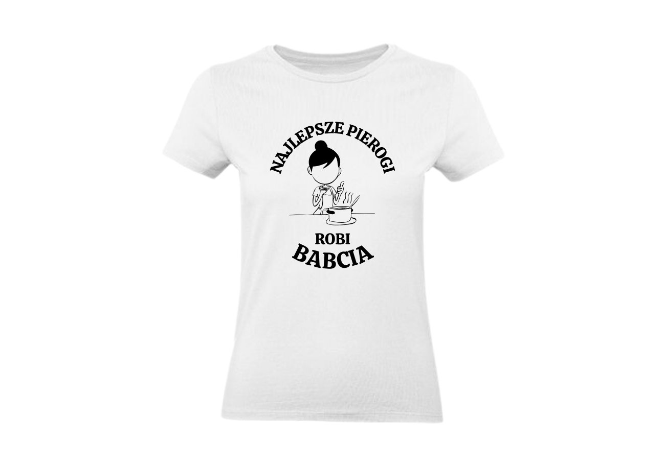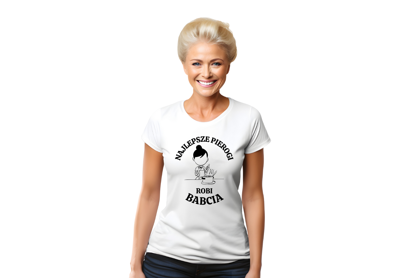 Koszulka Damska na Dzień Babci: "Najlepsze Pierogi Robi Babcia". To uroczy sposób na wyrażenie szacunku i miłości do babci, której pierogi są niezapomniane. Niech ta koszulka stanowi wyjątkowy prezent, podkreślając, że najlepsze smaki rodzą się w domu Twojej ukochanej babci!