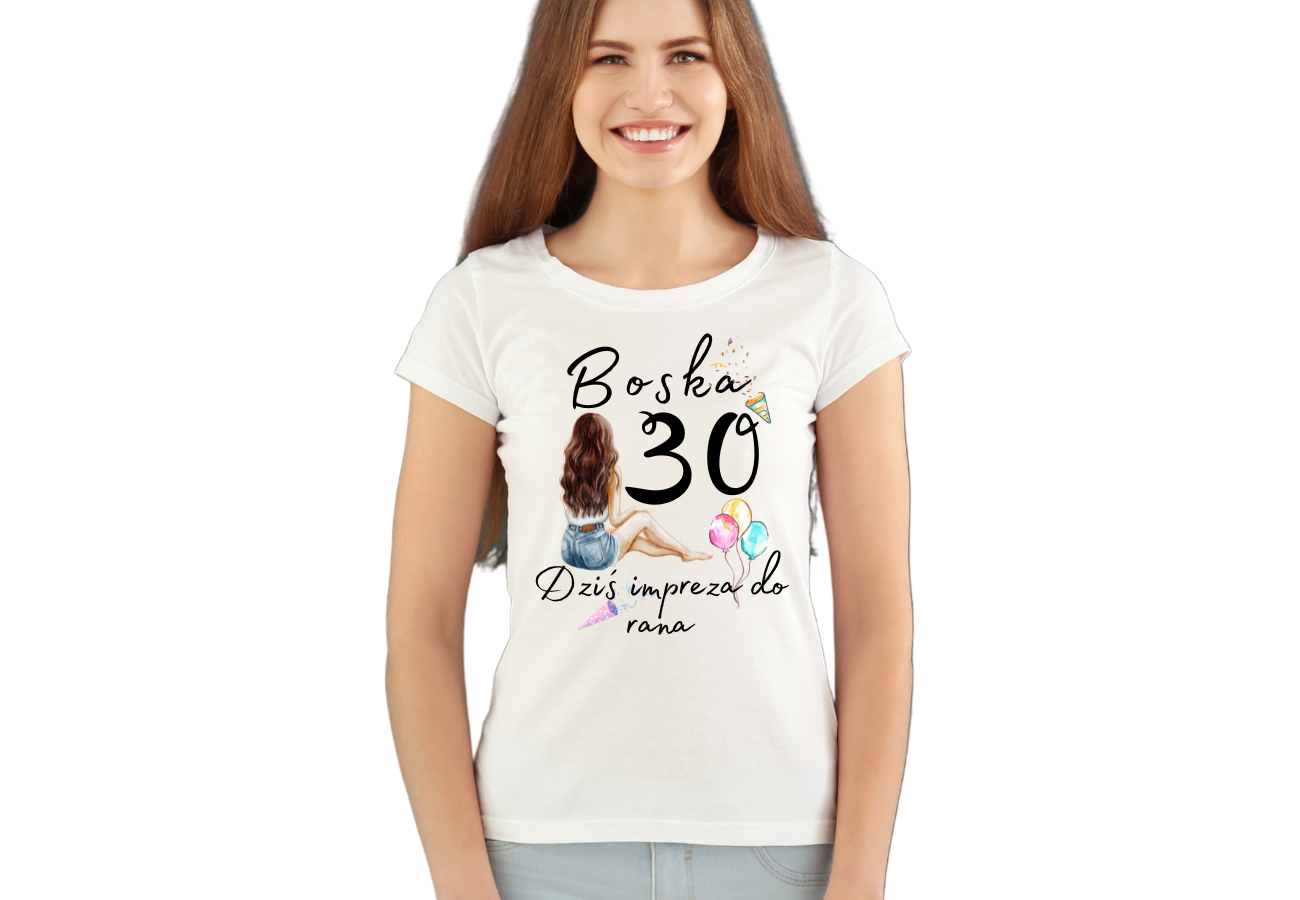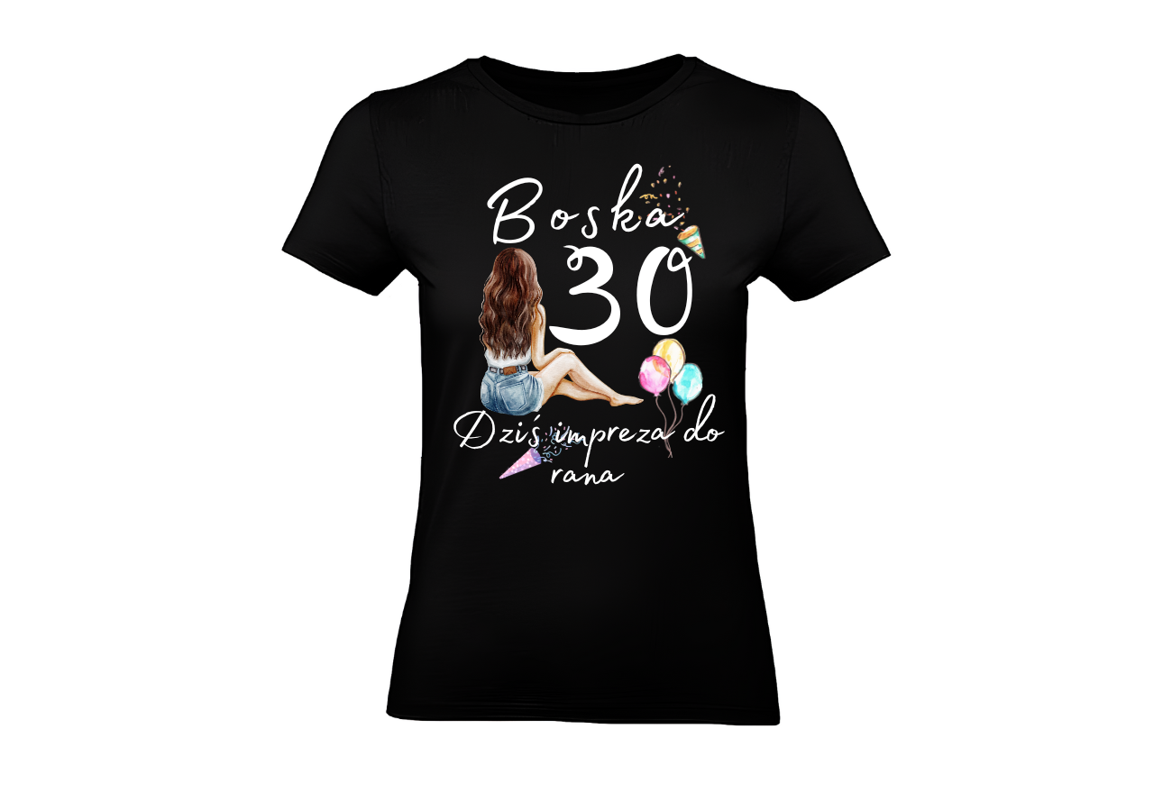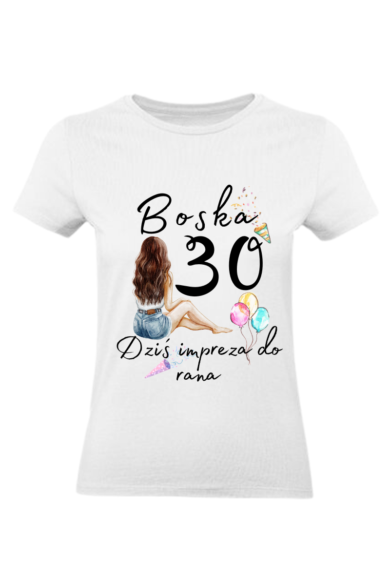 Koszulka Damska na urodziny, Boska 30, Dziś Impreza Do Rana _1