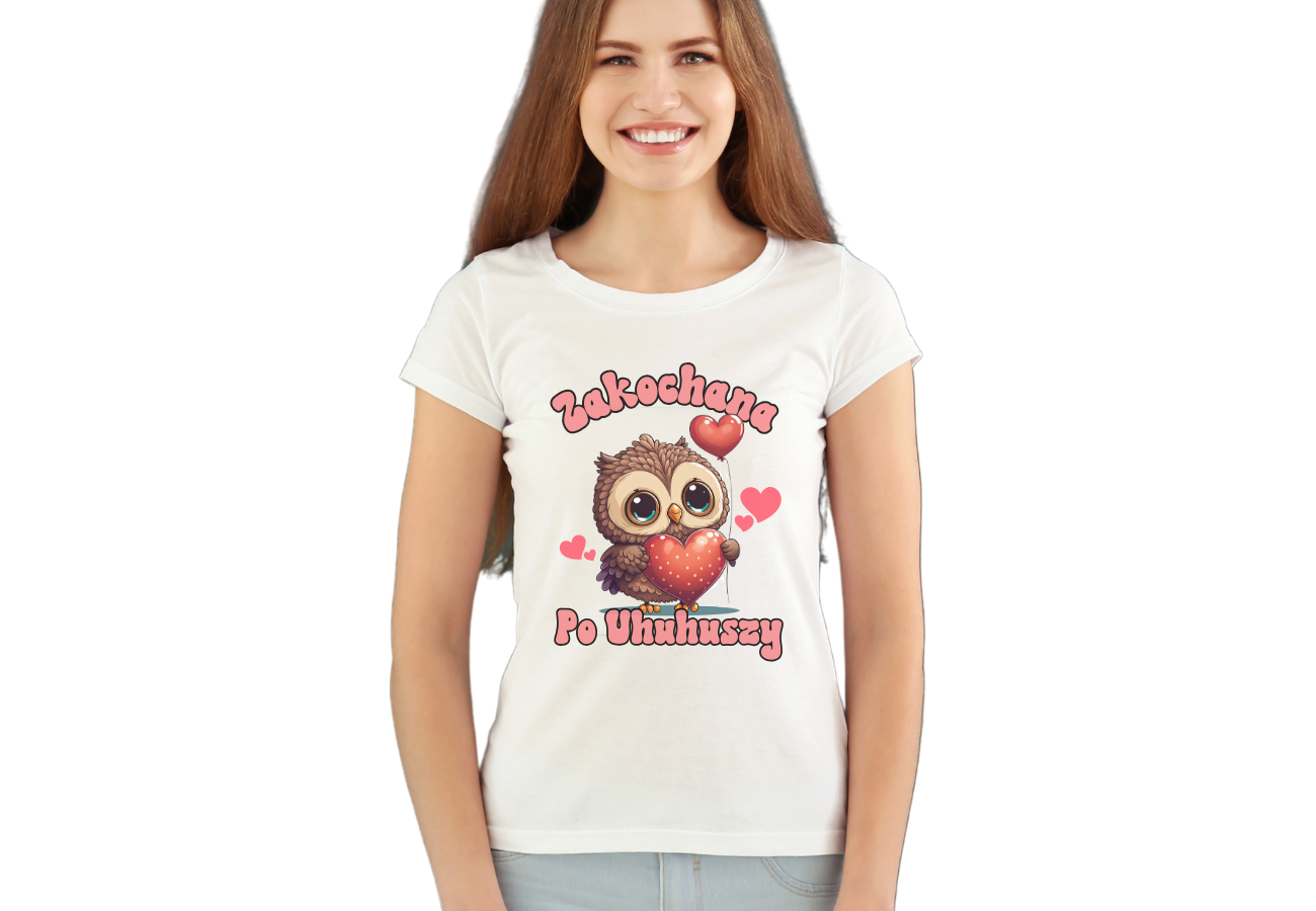 Koszulka damska "Zakochana po Uhuhuszy" to idealny wybór na Walentynki! Urocza sowa na nadruku symbolizuje miłość, a zabawny napis dodaje romantycznego uroku. Świetny prezent dla ukochanej osoby lub samej siebie!