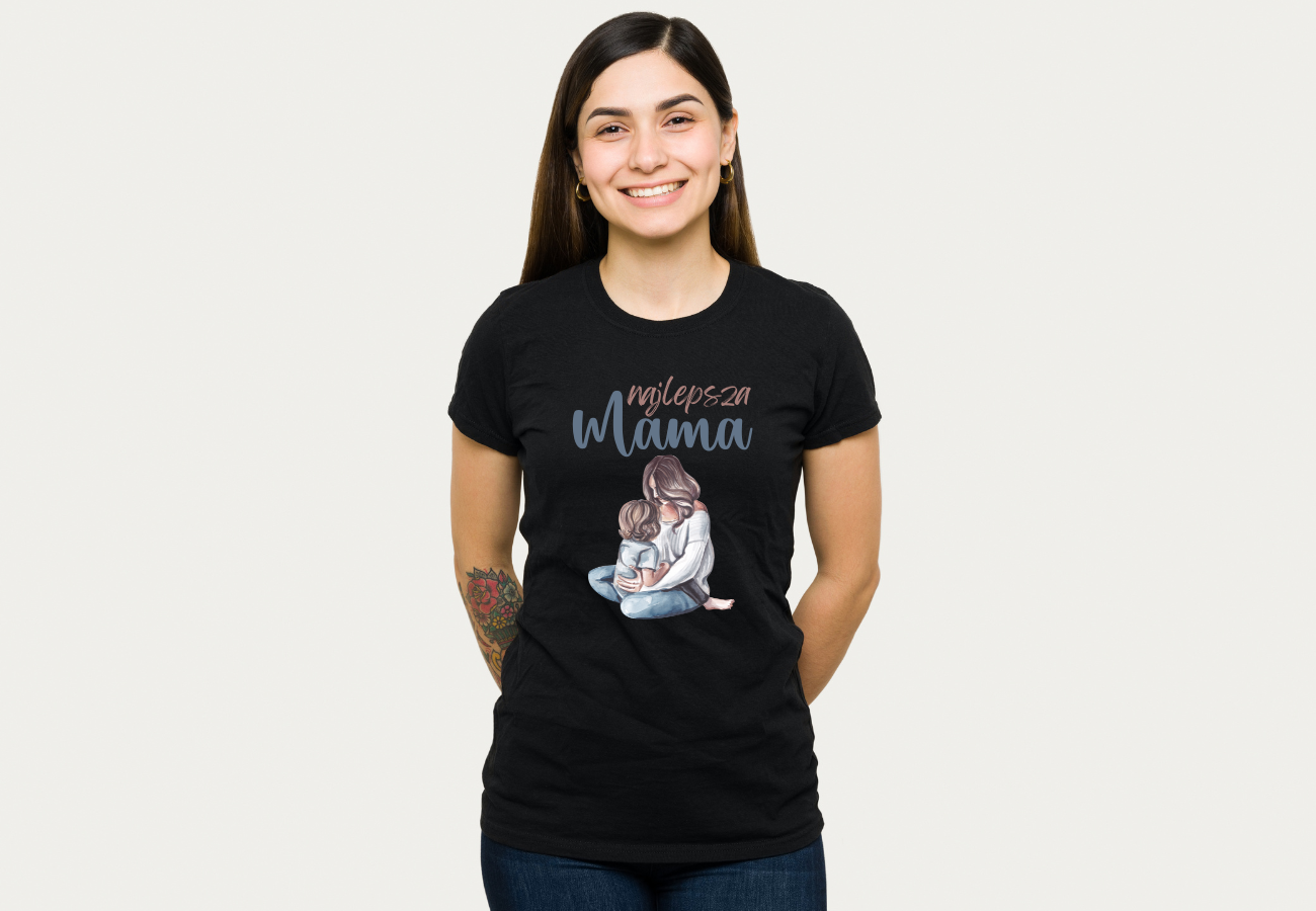Koszulka "Najlepsza mama" to wyjątkowy sposób na wyrażenie miłości i podziwu dla niezastąpionej matki. Grafika, choć cyfrowa, doskonale odzwierciedla ręcznie malowaną ilustrację, łącząc nowoczesną technologię z tradycyjnym, ręcznym stylem, podkreślając wyjątkowość Twojej mamy.