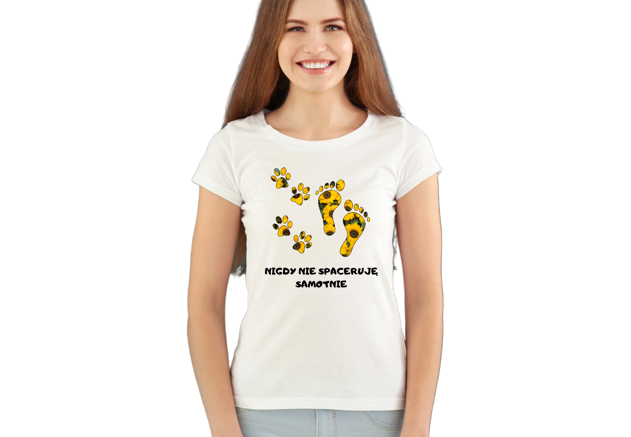 Koszulka Damska "Nigdy Nie Spaceruję Samotnie" to idealna propozycja dla miłośniczek spacerów z pupilem. Dzięki zabawnemu nadrukowi, podkreślisz swoją więź ze swoim czworonożnym przyjacielem. Spaceruj stylowo i z uśmiechem!