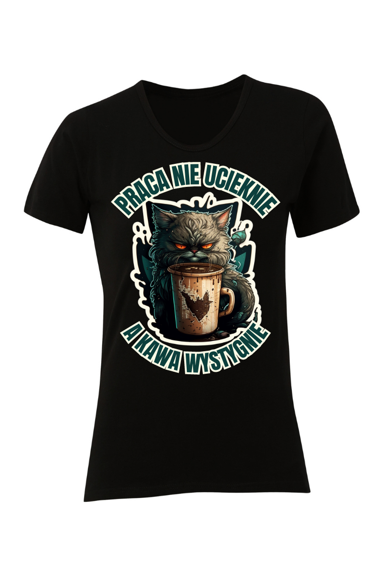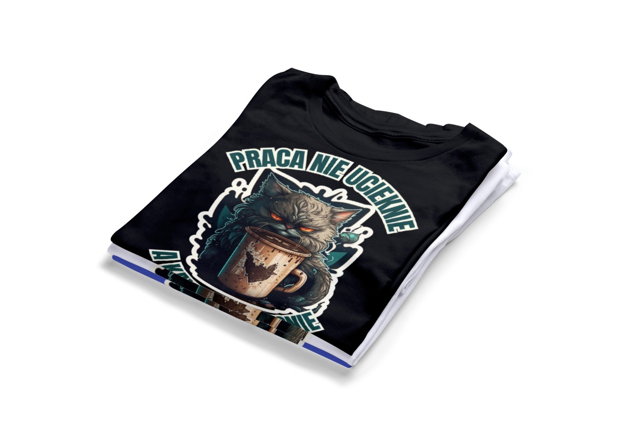 "Praca nie ucieknie, a kawa wystygnie" to właśnie ta koszulka przypomina nam, że nawet najtrudniejsze zadania mogą poczekać, ale nasza ukochana kawa nie zawsze będzie gorąca. Kombinacja humoru i grafiki z uroczym kotem sprawia, że ta koszulka to idealny wybór dla tych, którzy kochają kawę, czarne koty i śmieszne przekazy o życiu. Włoż tę koszulkę i dodaj trochę zabawy do swojego dnia!