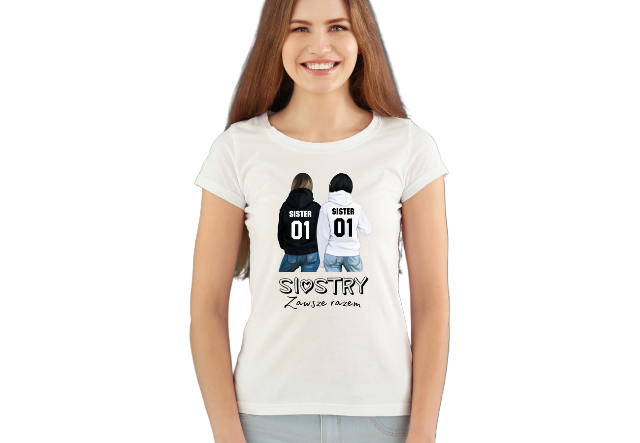 Koszulka Damska "Siostry - Zawsze Razem" to hołd dla wyjątkowej więzi między siostrami. Ta koszulka podkreśla, że siostry zawsze trzymają się razem, niezależnie od przeciwności losu. To ubranie, które wyraża radość z bliskiej relacji i pewność, że niezależnie od wszystkiego, jesteście razem.