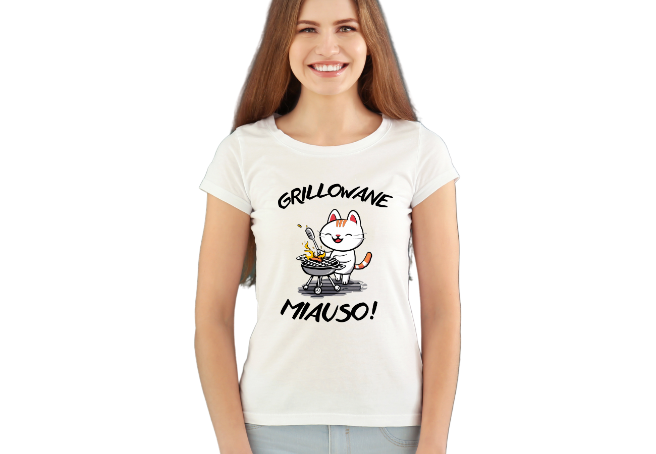 Zabierz swojego kociaka na grilla z tą śmieszną koszulką! Z uroczym kotem i napisem "Grillowane Miauso" rozśmieszysz każdego miłośnika kotów. Niech twoja pasja do grillowania i miłość do zwierzaków idą w parze na letnich spotkaniach ze znajomymi!