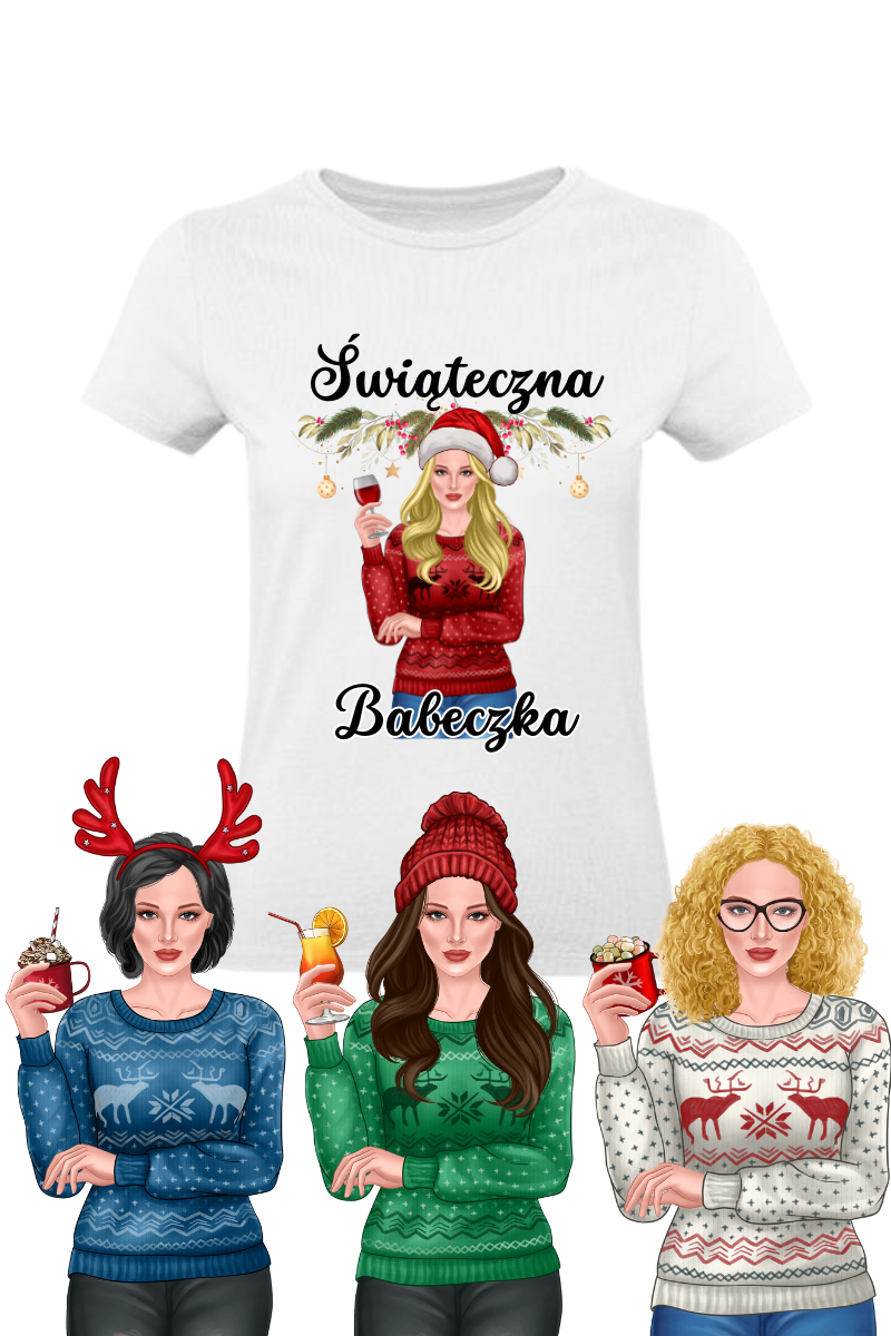 Koszulka damska "Świąteczna Babeczka" to oryginalny prezent na święta! Możesz spersonalizować postać, wybierając fryzurę i kolor włosów. Dodatkowo, jeśli chcesz, podaj imię, które znajdzie się na nadruku – wystarczy wpisać je w wiadomości do sprzedawcy. Możesz również określić rodzaj drinka, w przeciwnym razie zostanie wybrany losowo.