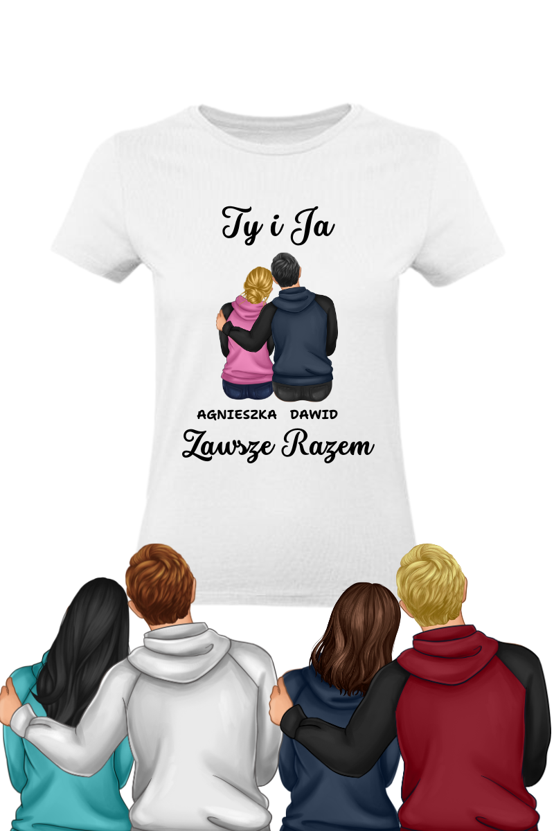 Koszulka "Ty i Ja Zawsze Razem" to wyjątkowy, personalizowany prezent dla par! Dopasuj kolor i długość włosów oraz podaj imiona. Jeśli chcesz dodatkowo określić kolor ubrań, wpisz swoje preferencje w wiadomości do sprzedawcy inaczej te zostaną wygenerowane losowo.