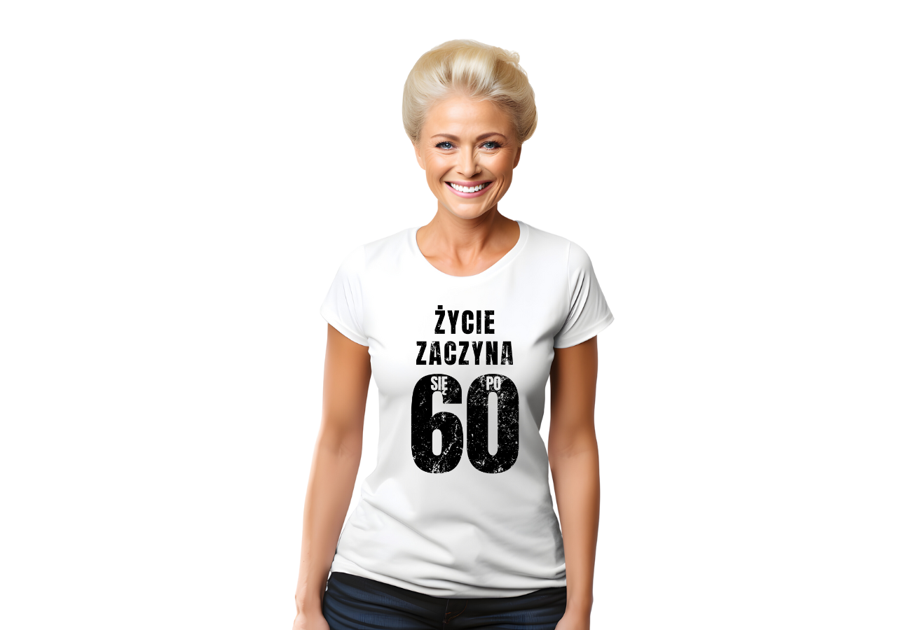Koszulka "Życie Zaczyna Się Po 60" to idealny wybór na urodziny, symbolizująca nowy etap życia. Zabawny nadruk sprawdzi się jako prezent dla każdego, kto celebruje sześćdziesiątkę z uśmiechem i optymizmem.