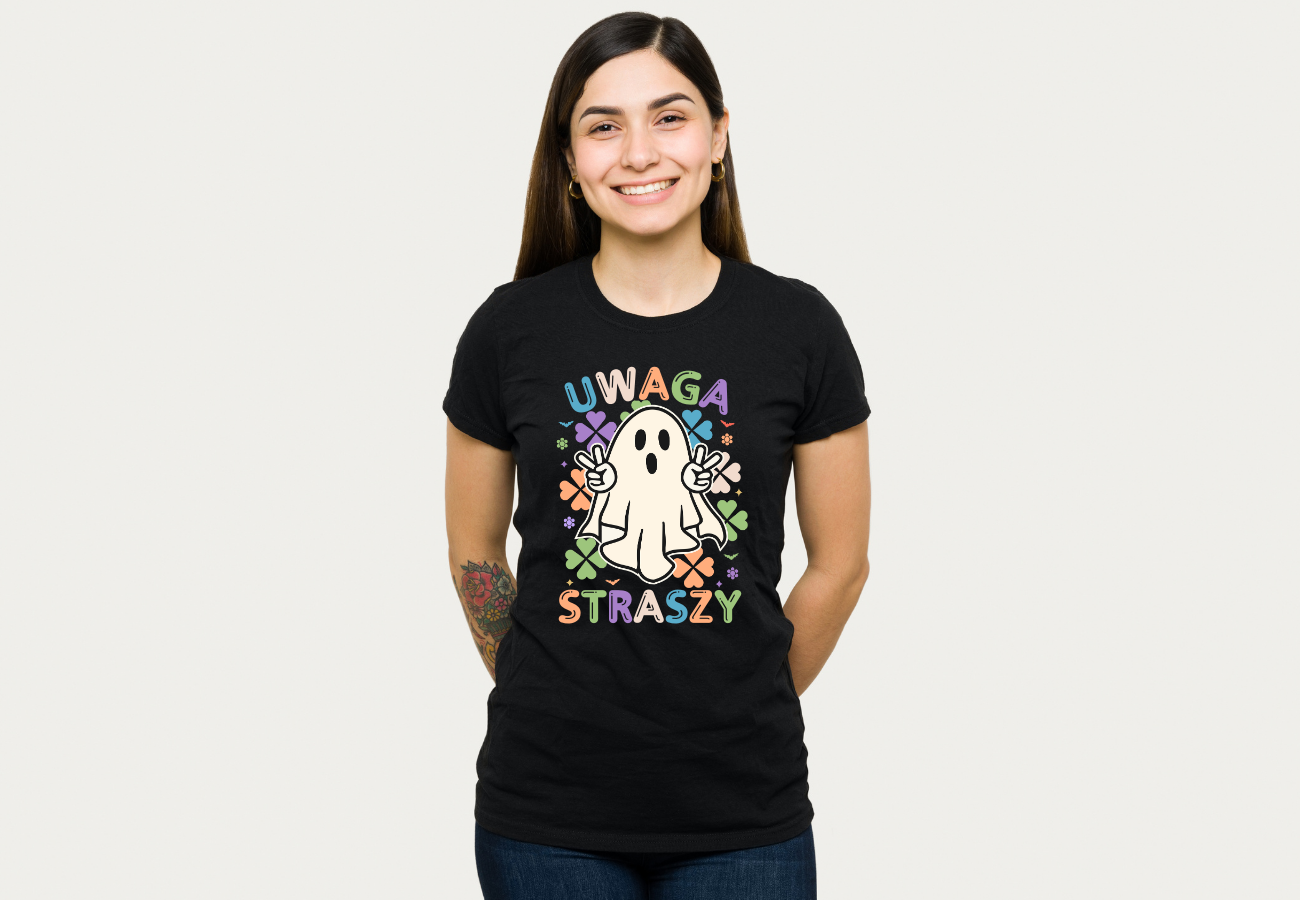 Koszulka "Uwaga, Straszy" z uroczym duszkiem to wyjątkowy sposób na świętowanie Halloween z uśmiechem na twarzy. Ten duszek jest bardziej uroczy niż straszny i idealnie odzwierciedla ducha tego magicznego święta. Ubierz ją i gotuj się na zabawę Halloween pełną uroku!