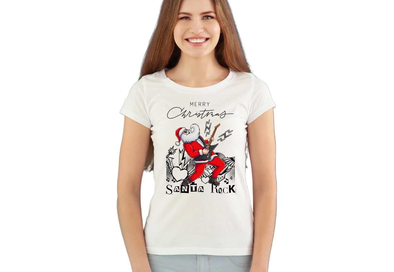 Koszulka "Wesołych Świąt - Santa Rock" to wyraz radości i nieco szalonej atmosfery świąt Bożego Narodzenia. Ta koszulka przedstawia Świętego Mikołaja w rockowym wydaniu, dodając świątecznym przygotowaniom odrobinę rockowej zadziorności. To ubranie, które wyraża Twoje podejście do świąt w unikalny sposób, pełen wigoru i świątecznej magii.