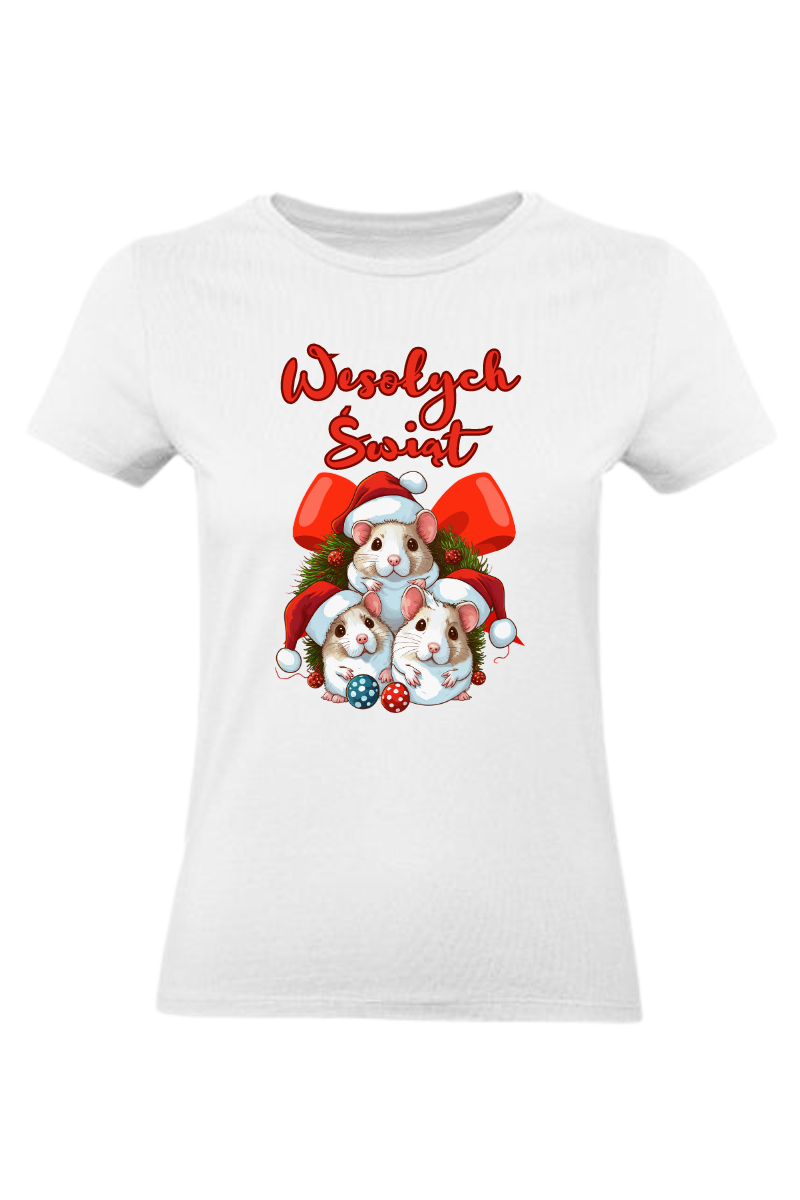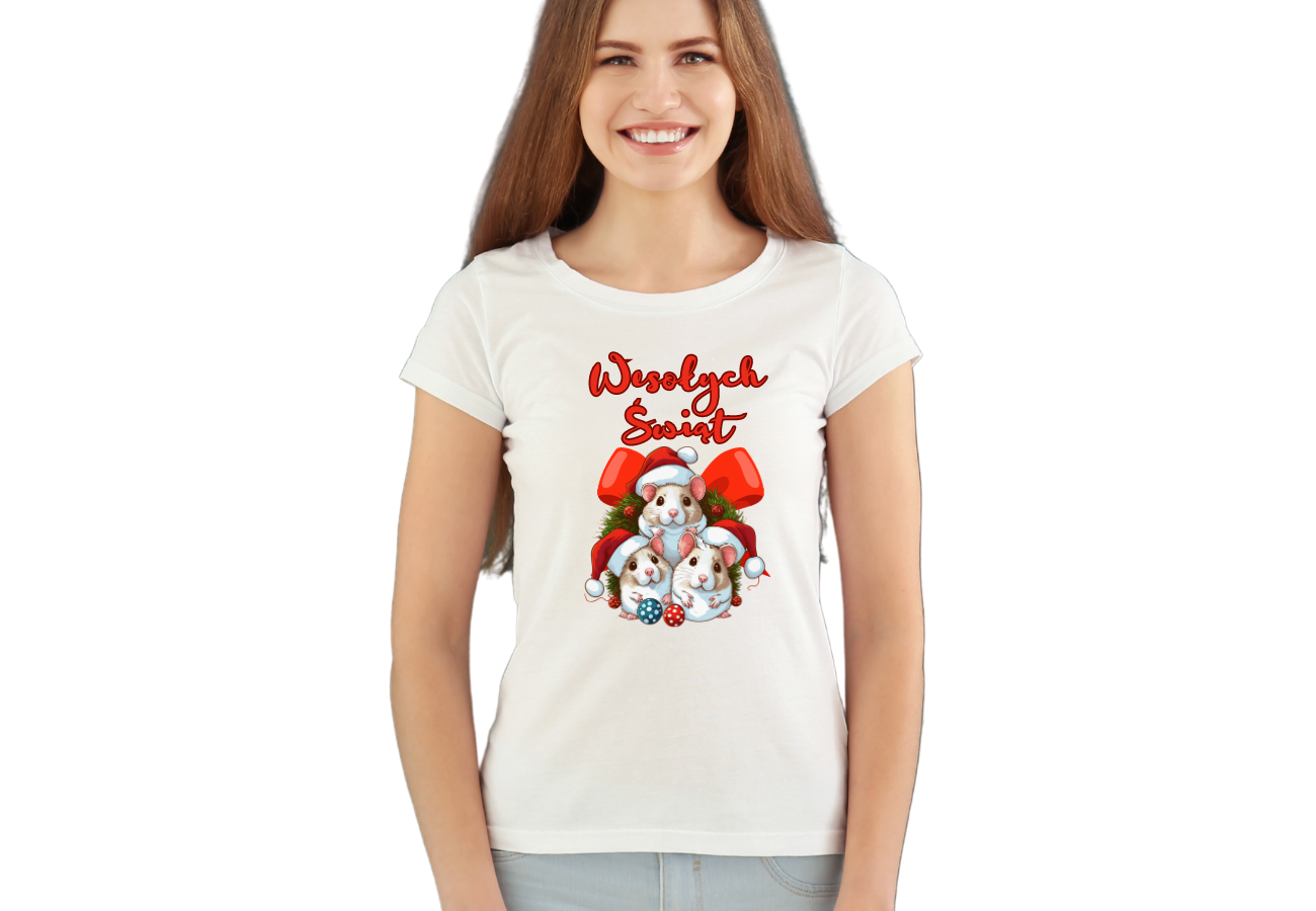 Koszulka "Wesołych Świąt - Świąteczne Zwierzaki" to wyraz uroku i radości okresu świątecznego, którą niosą ze sobą świąteczne zwierzaki. Ta koszulka przedstawia urocze zwierzęta, które doskonale oddają atmosferę radości i wspólnego świętowania. To ubranie, które wyraża Twoją miłość do świąt Bożego Narodzenia i uroczych zwierzaków.