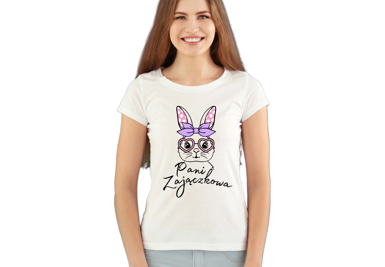 Wesołych Świąt Wielkanocnych od Pani Zajączkowej! Ta urocza koszulka to idealny strój na świąteczne przyjęcia. Dodaj trochę uroku i humoru do swojej garderoby na Wielkanoc!
