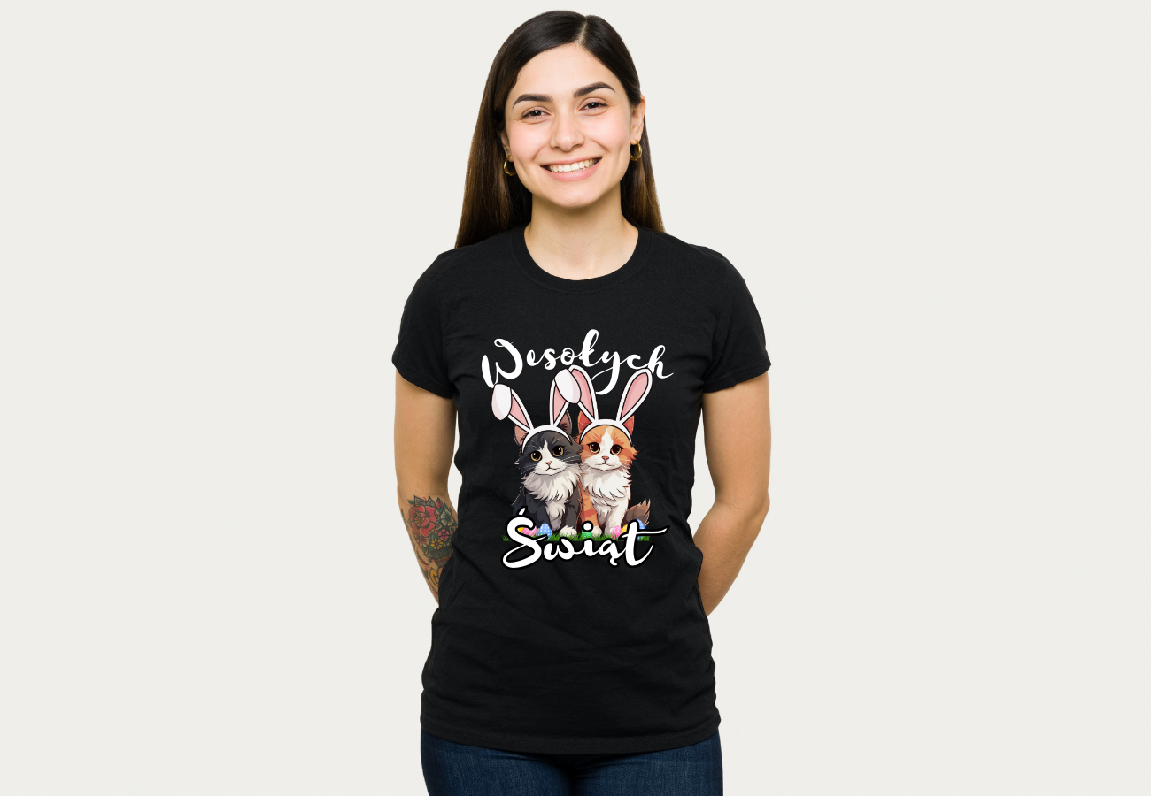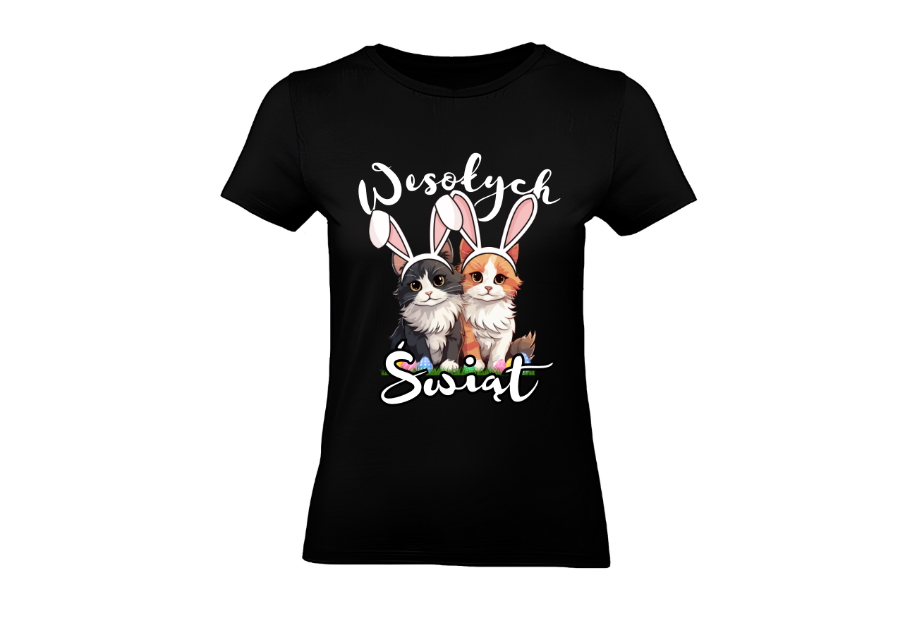 Wesołych Świąt Wielkanocnych od dwóch uroczych kotów! Idealny sposób na wyrażenie radości z nadchodzących świąt. Świetny prezent dla miłośników kotów i świątecznej atmosfery!