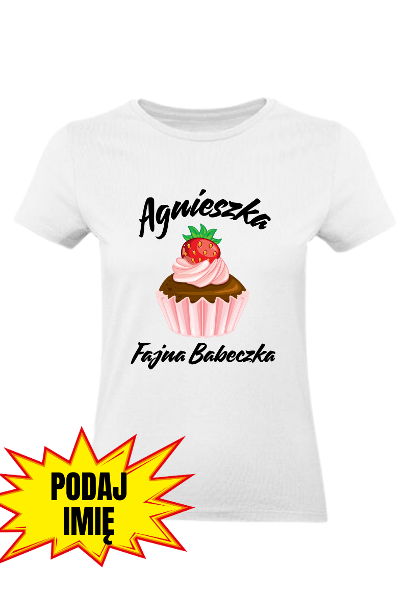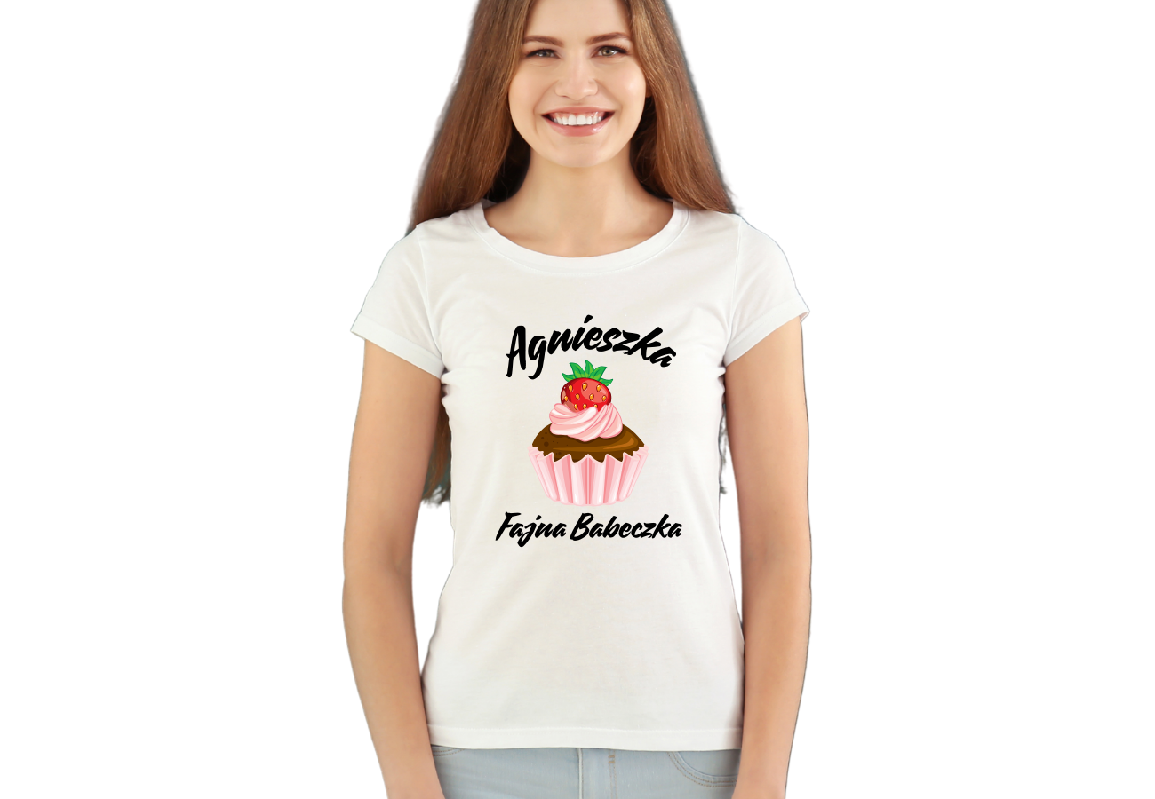 Koszulka damska "Fajna Babeczka" to uroczy i zabawny prezent! Personalizowany nadruk z imieniem sprawia, że koszulka staje się wyjątkowa i idealnie dopasowana do właścicielki. Świetny wybór dla każdej pewnej siebie i pełnej uroku kobiety!