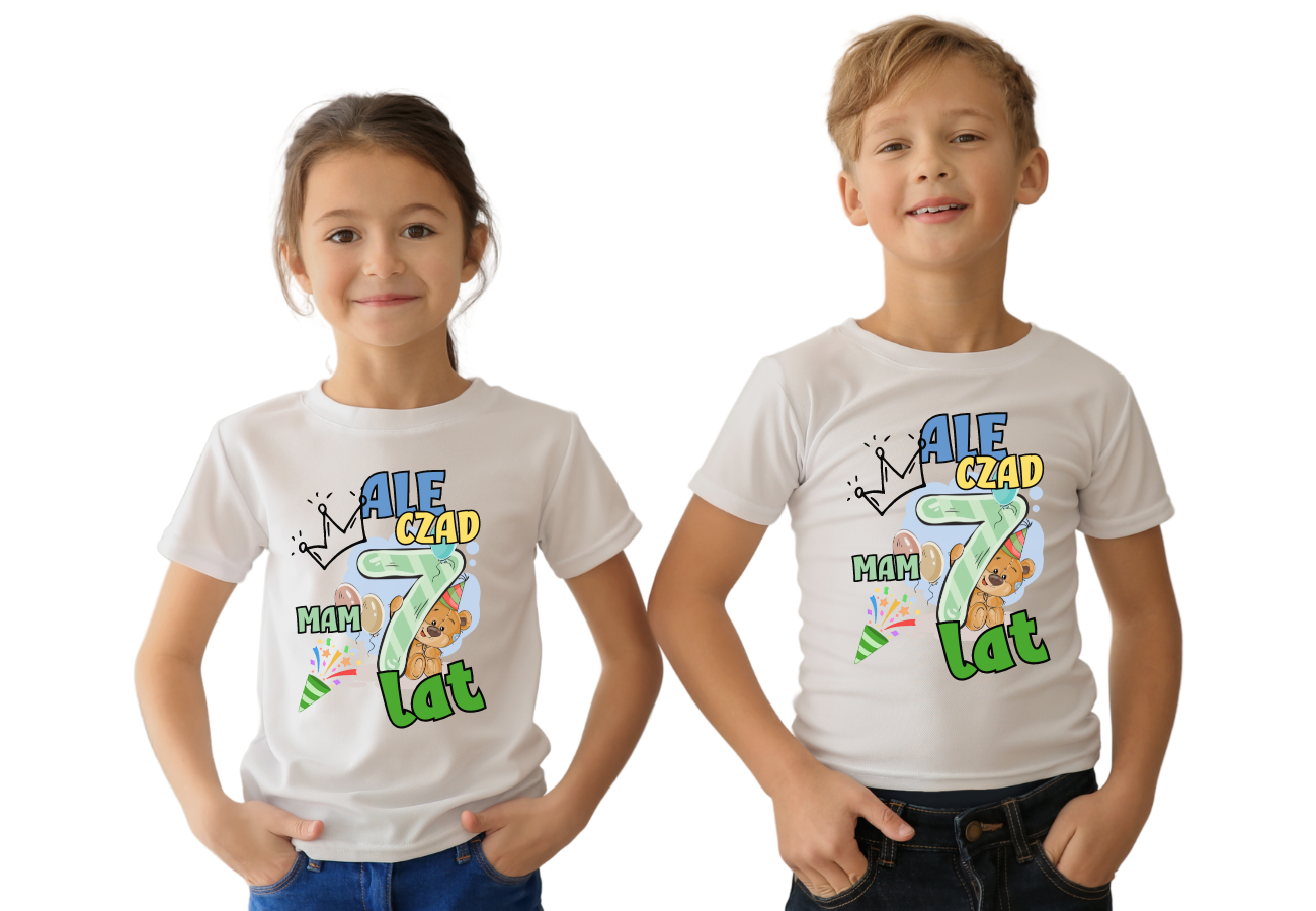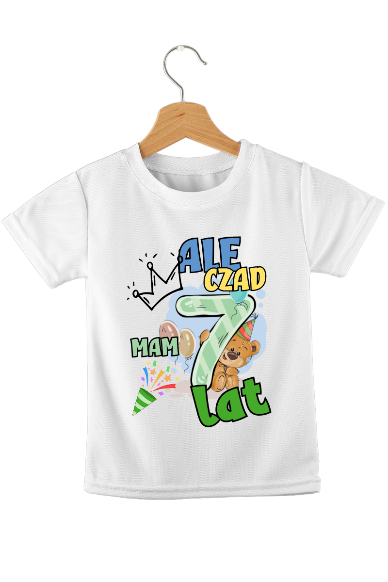 Koszulka "Ale Czad, Mam 7 Lat" to idealna koszulka dla małego jubilata. Zabawna i kolorowa grafika z dumą oznajmia osiągnięcie ważnego kamienia milowego w życiu dziecka. Doskonały prezent, który uczyni jego 7 urodziny jeszcze bardziej wyjątkowymi.