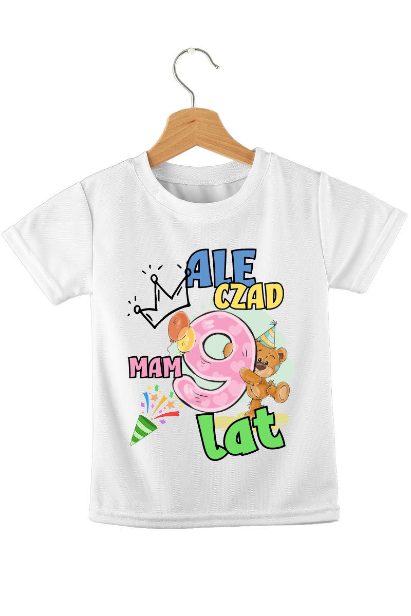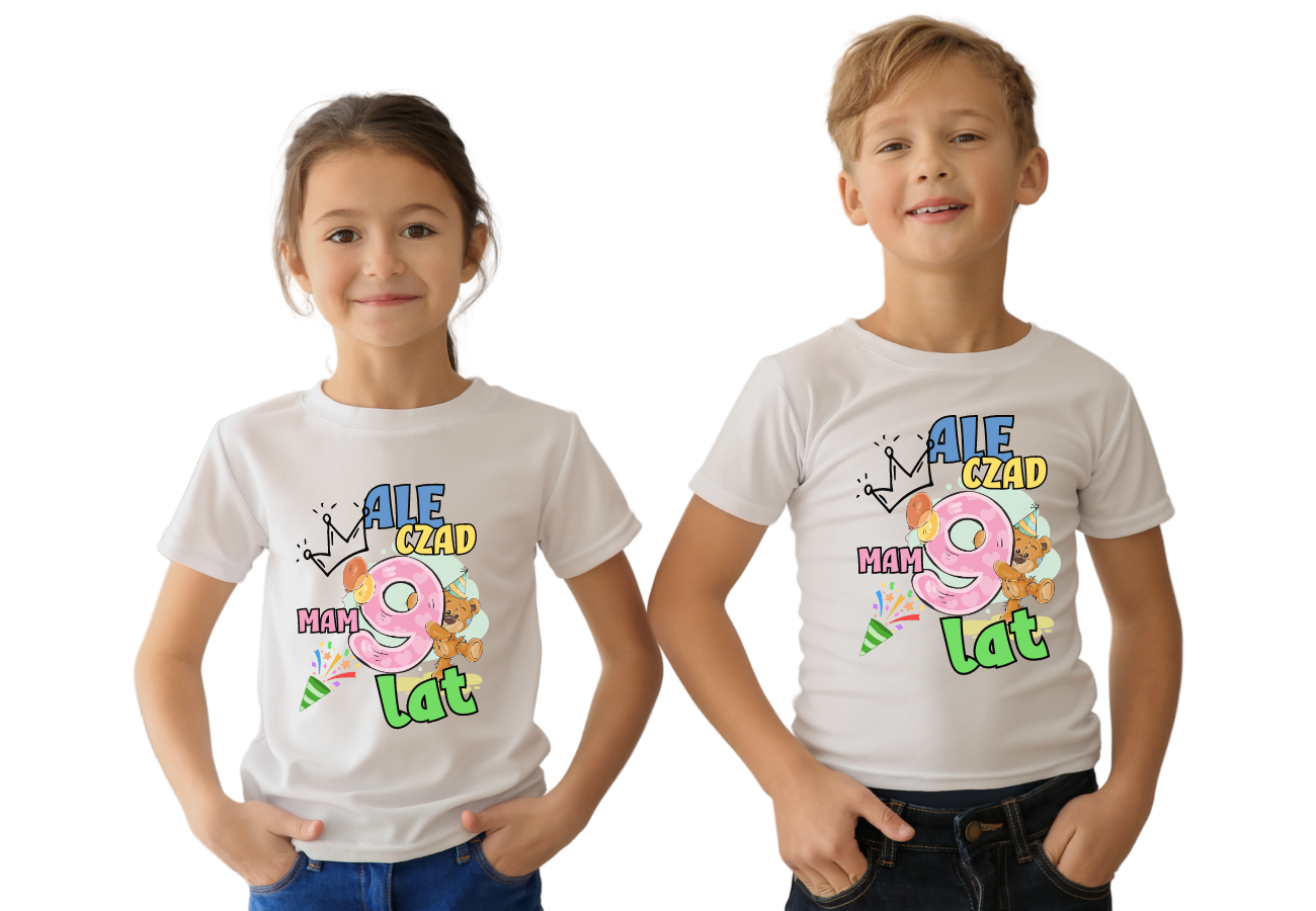 Koszulka "Ale Czad, Mam 9 Lat" to idealna koszulka dla małego jubilata. Zabawna i kolorowa grafika z dumą oznajmia osiągnięcie ważnego kamienia milowego w życiu dziecka. Doskonały prezent, który uczyni jego 9 urodziny jeszcze bardziej wyjątkowymi.