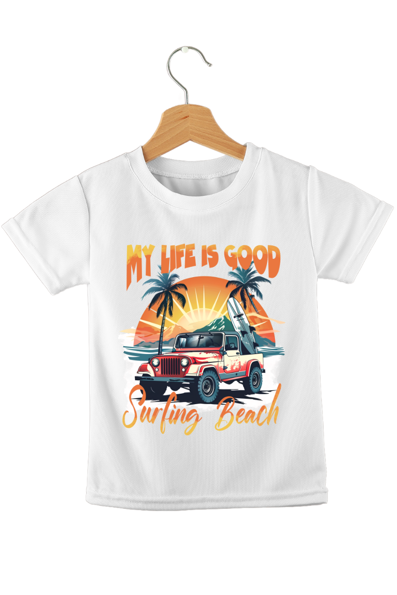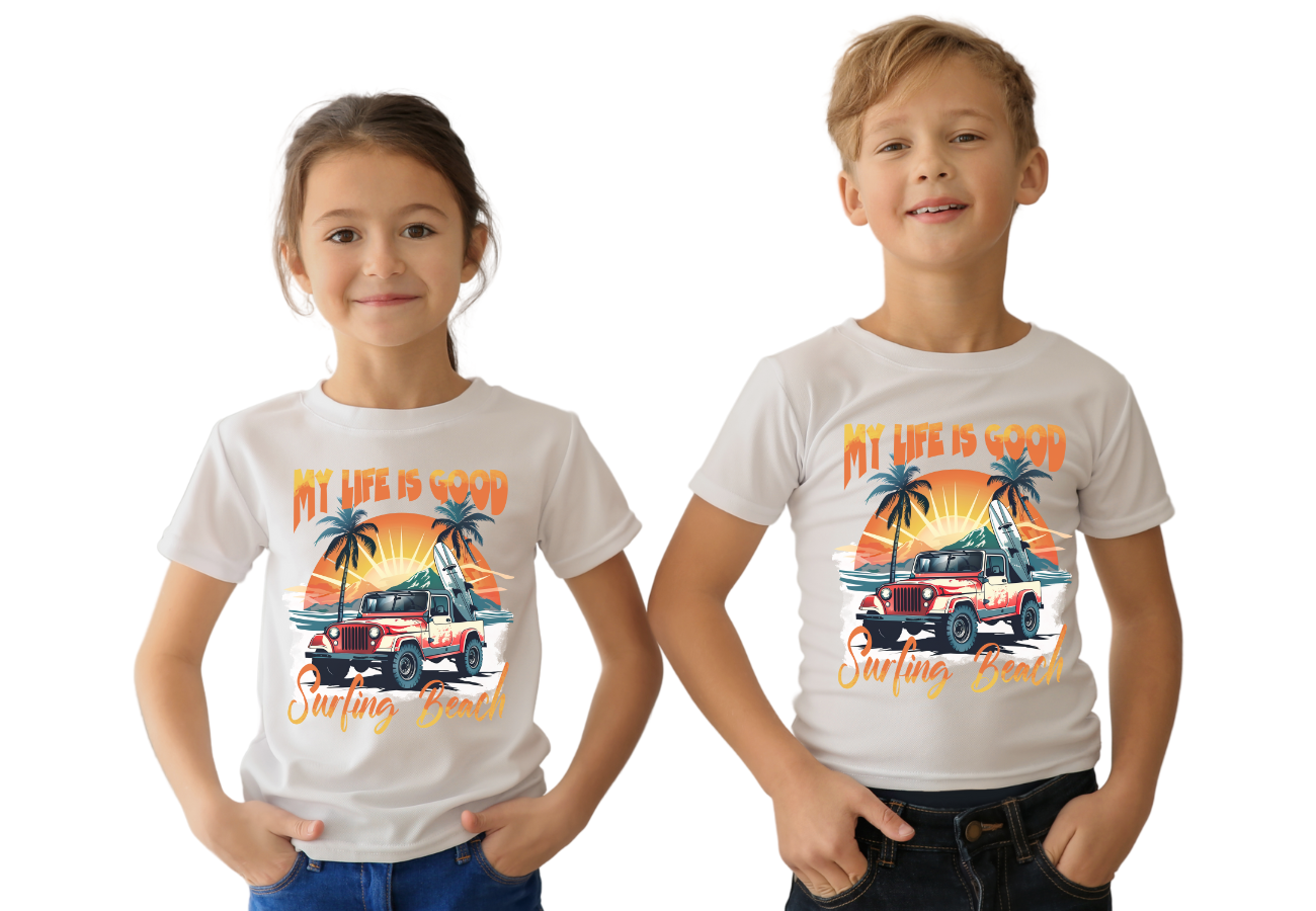 Koszulka "Lato, Wakacje, Surfing Beach" to doskonały wybór na letnie dni. Idealnie oddaje klimat wakacji i miłość do plaży. Wybierz ją na relaksujący dzień nad morzem i ciesz się letnią atmosferą w pełni!