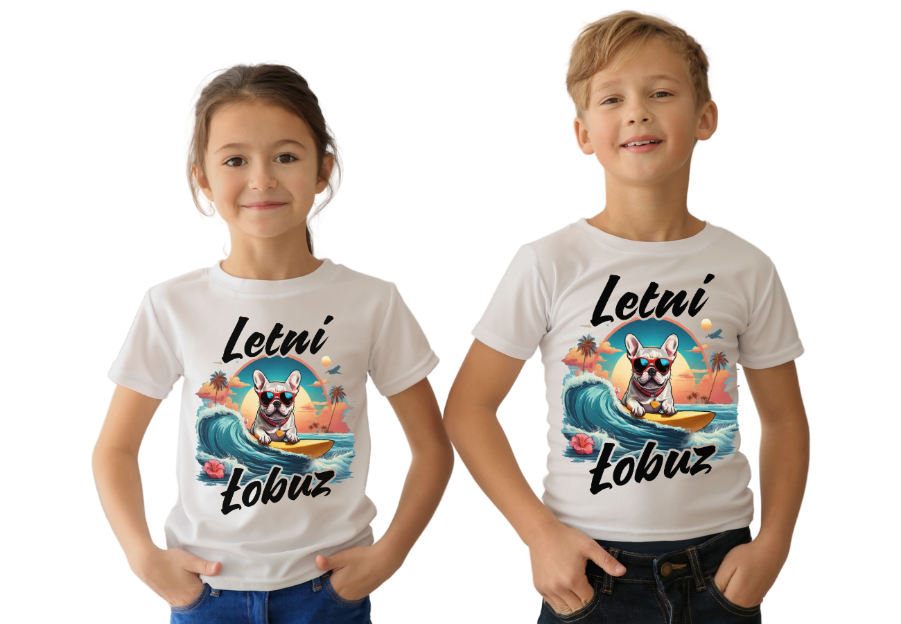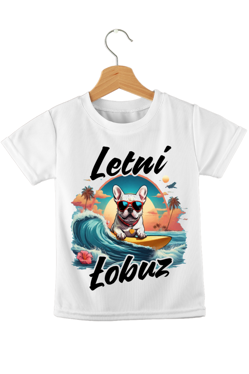 Koszulka dziecięca "Letni Łobuz Psiak Zgryziak" to świetna propozycja dla małych miłośników surfingu i psot! Pies w okularach przeciwsłonecznych, pędzący na desce surfingowej, to prawdziwy symbol letniej zabawy i przygód. Idealna na wakacyjne szaleństwa!