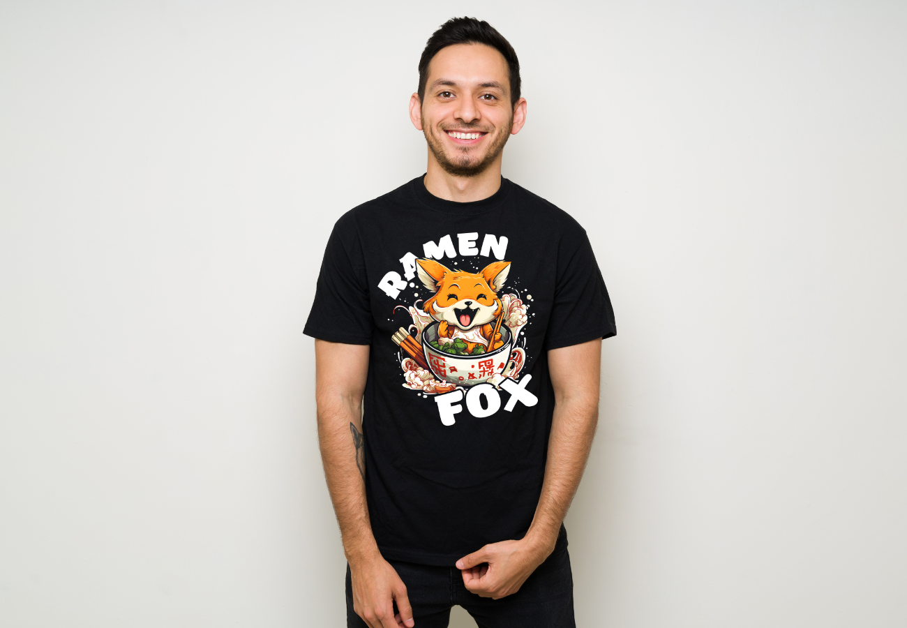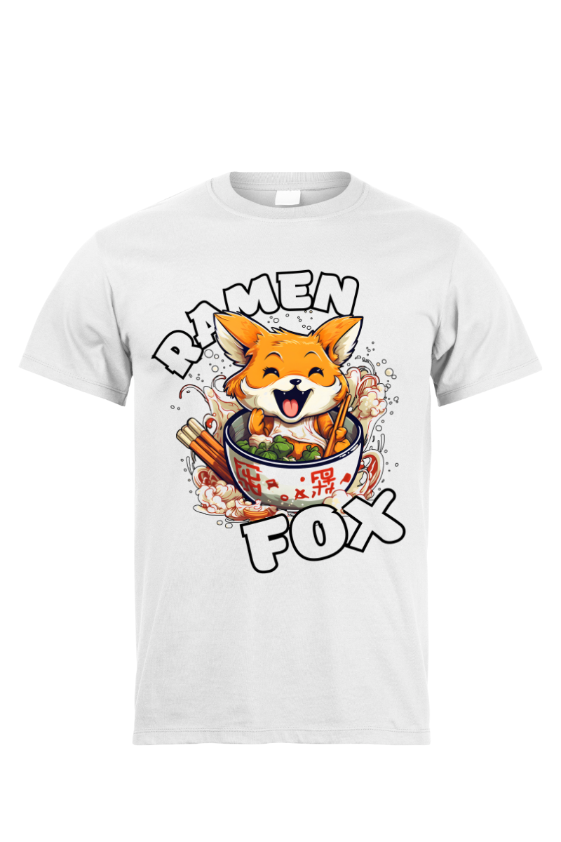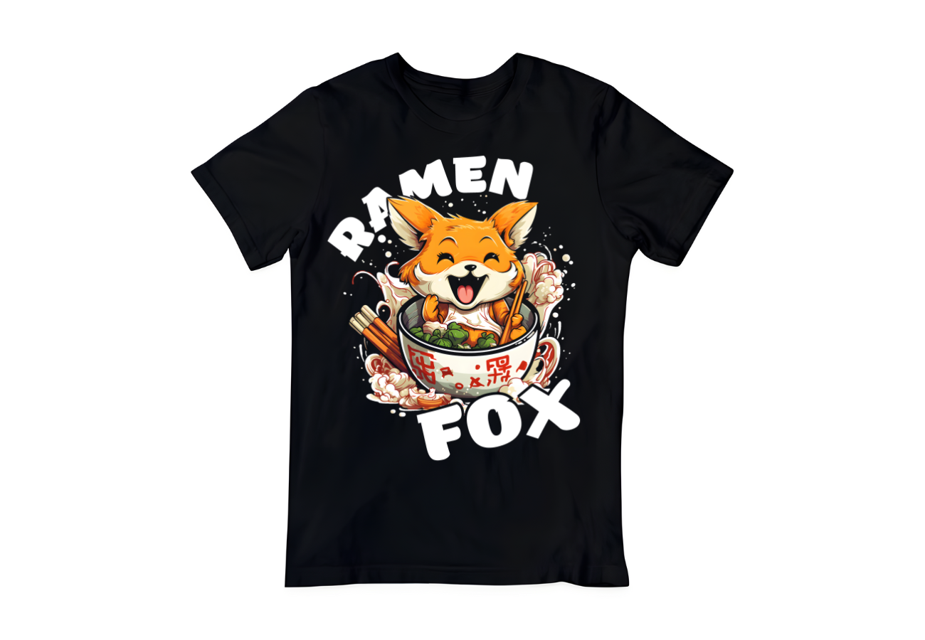 Na tej koszulce widoczny jest uroczy lis, wygodnie usadowiony w misce pełnej aromatycznego ramenu. Trzyma w swojej łapce pałeczki gotowe do zanurzenia w tych smakowitych nitkach. Ta "Koszulka Funny Ramen Fox"
