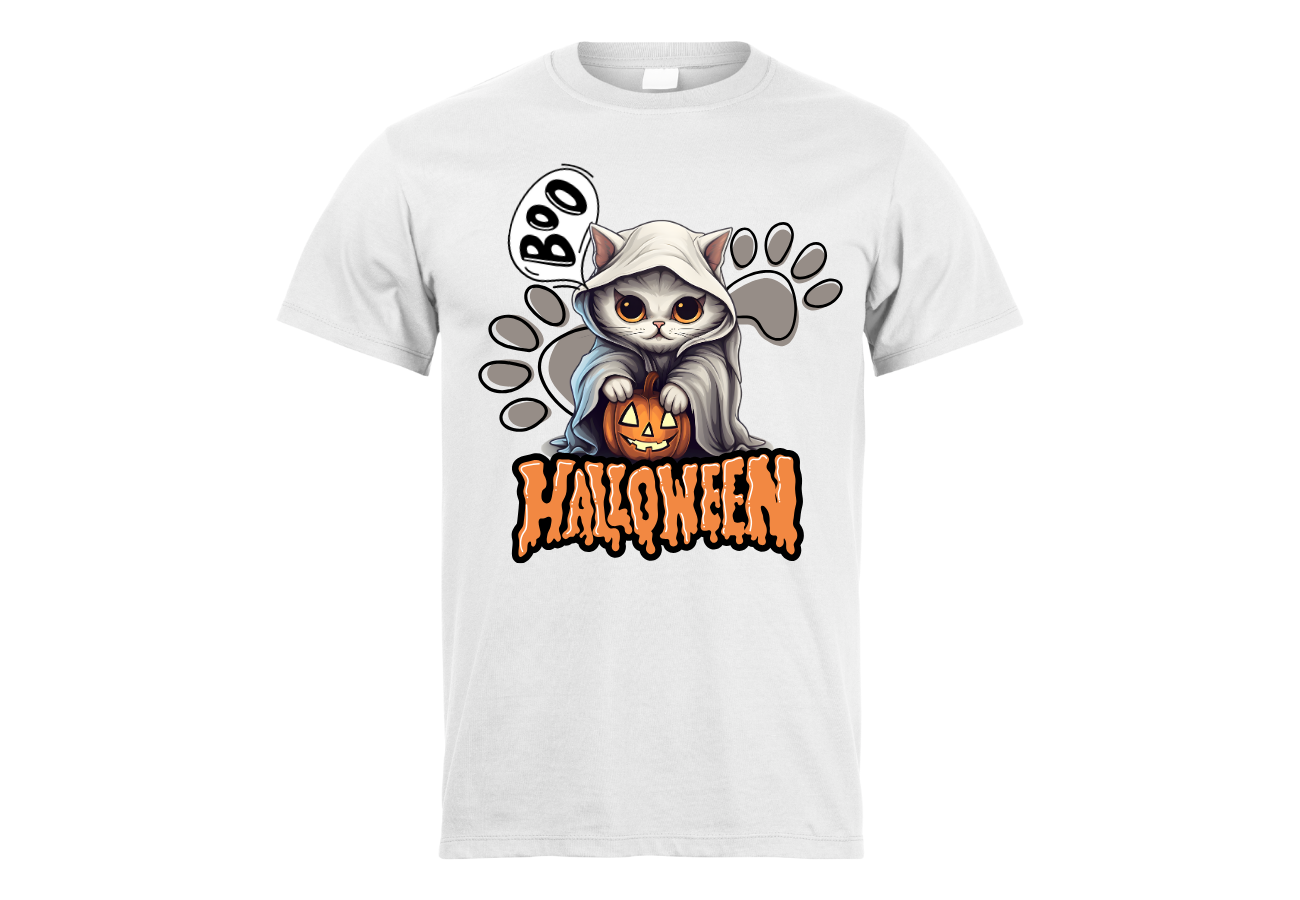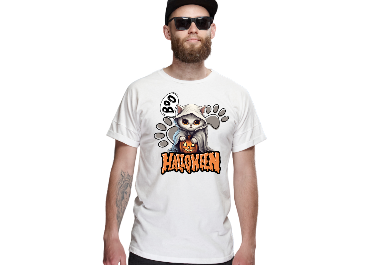 Koszulka "Halloween Kot Duch" to mieszanka uroku i tajemniczości, gdy kot w duchowym przebraniu wprowadza w niesamowity nastrój tego święta. Ta koszulka doskonale oddaje ducha Halloween, dodając odrobinę kociego uroku. Gotowy na noc pełną duchów? Happy Halloween!