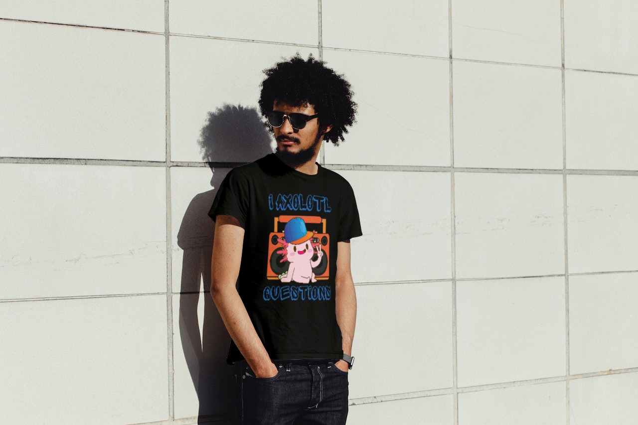i energicznego hip-hopu w jednym wyjątkowym wzorze na koszulce "I Axolotl Questions Hip-Hop Skate".