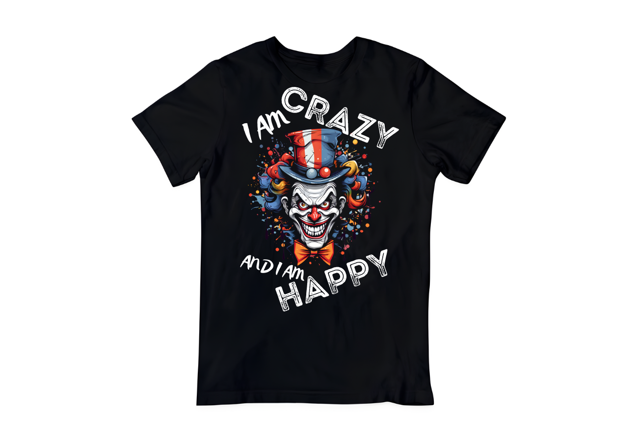 Koszulka "Klaun Crazy And Happy" z uśmiechniętym klaunem to ekspresyjny wzór, który symbolizuje radość i zabawę, idealny do wyrażenia swojego radosnego podejścia do życia! Ubierz ją i podziel się pozytywnym przesłaniem, które przyciągnie uśmiech na twarzach innych, tworząc niezapomnianą atmosferę radości.