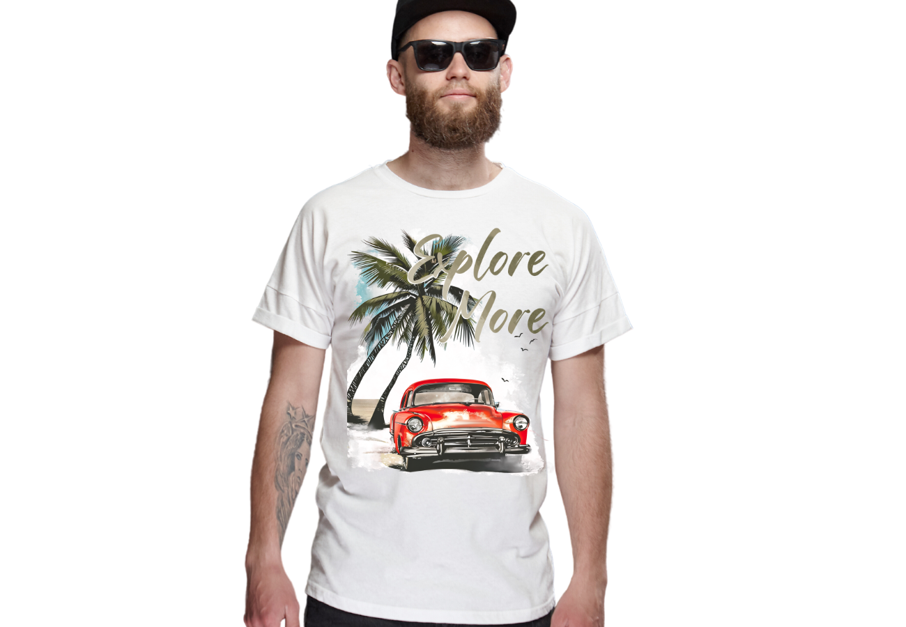 Koszulka "Lato, Wakacje, Explore More" to must-have dla wszystkich miłośników przygód! Idealna na letnie dni, podkreśla twoją pasję do odkrywania nowych miejsc. Załóż ją i pokaż światu, że jesteś gotowy na każdą wakacyjną przygodę!