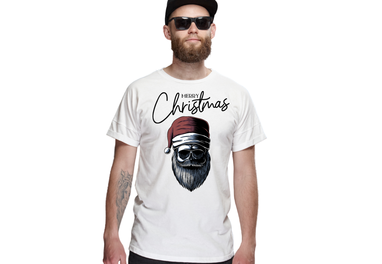 Koszulka "Merry Christmas - Czaszka Mikołaj" to nietypowe podejście do świąt Bożego Narodzenia, łączące świąteczny klimat z odrobiną odwagi i humoru. Ta koszulka przedstawia Mikołaja w nieco innej odsłonie, nadając świętom wyjątkowego uroku. Wyraź swoją miłość do świąt z odrobiną oryginalności!