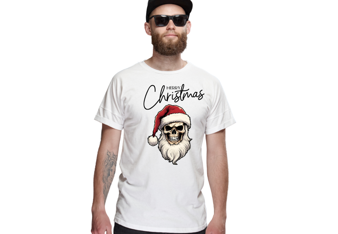 Koszulka "Merry Christmas - Czaszka Mikołaj" to nietypowe podejście do świąt Bożego Narodzenia, łączące świąteczny klimat z odrobiną odwagi i humoru. Ta koszulka przedstawia Mikołaja w nieco innej odsłonie, nadając świętom wyjątkowego uroku. Wyraź swoją miłość do świąt z odrobiną oryginalności!