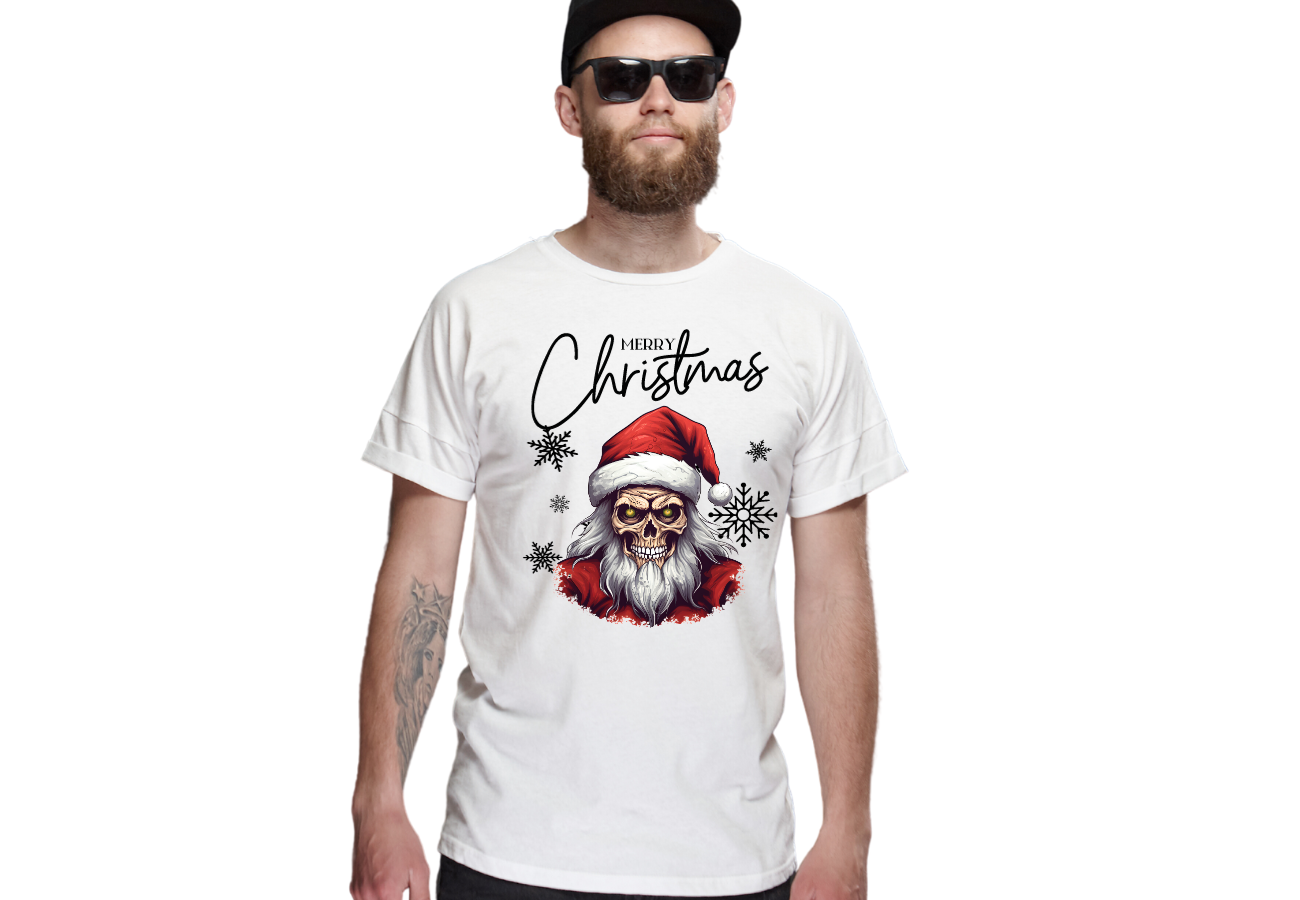 Koszulka "Merry Christmas - Santa Czaszka" to nietypowe podejście do świąt Bożego Narodzenia, łączące świąteczny klimat z odrobiną odwagi i humoru. Ta koszulka przedstawia Mikołaja w nieco innej odsłonie, nadając świętom wyjątkowego uroku. Wyraź swoją miłość do świąt z odrobiną oryginalności!