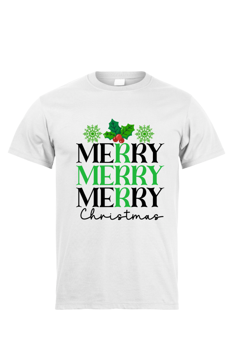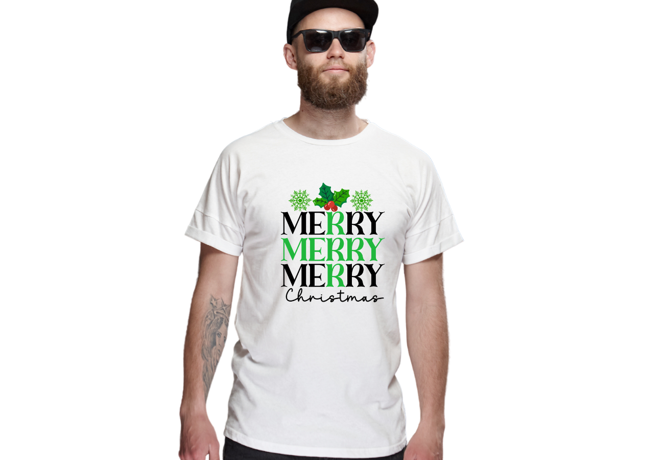 Koszulka "Merry Merry Merry Christmas" to pełna radości i świątecznego entuzjazmu propozycja na czas Bożego Narodzenia. Z trzema radosnymi "Merry", ta koszulka podkreśla atmosferę radosnego świętowania. To idealna koszulka, aby wyrazić swoją radość i uczestniczyć w magii świąt Bożego Narodzenia.