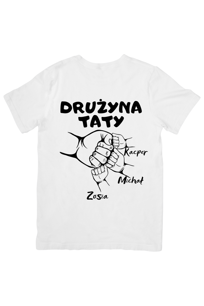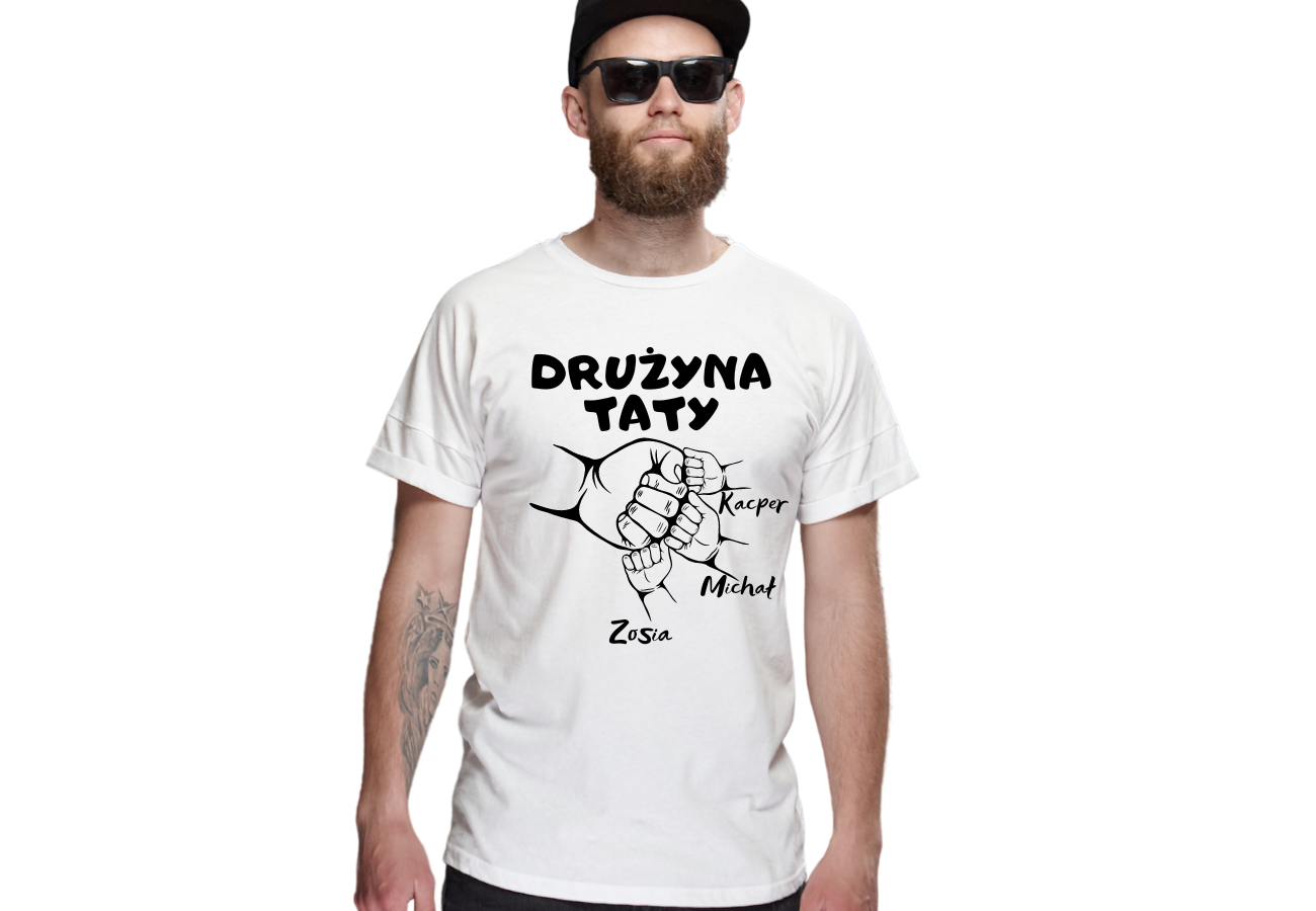 Koszulka "Drużyna Taty" to doskonały sposób na celebrowanie Dnia Ojca! Wyjątkowy prezent, który pozwala spersonalizować koszulkę imionami wszystkich dzieci. Spraw, by tata poczuł się dumny ze swojej drużyny każdego dnia!