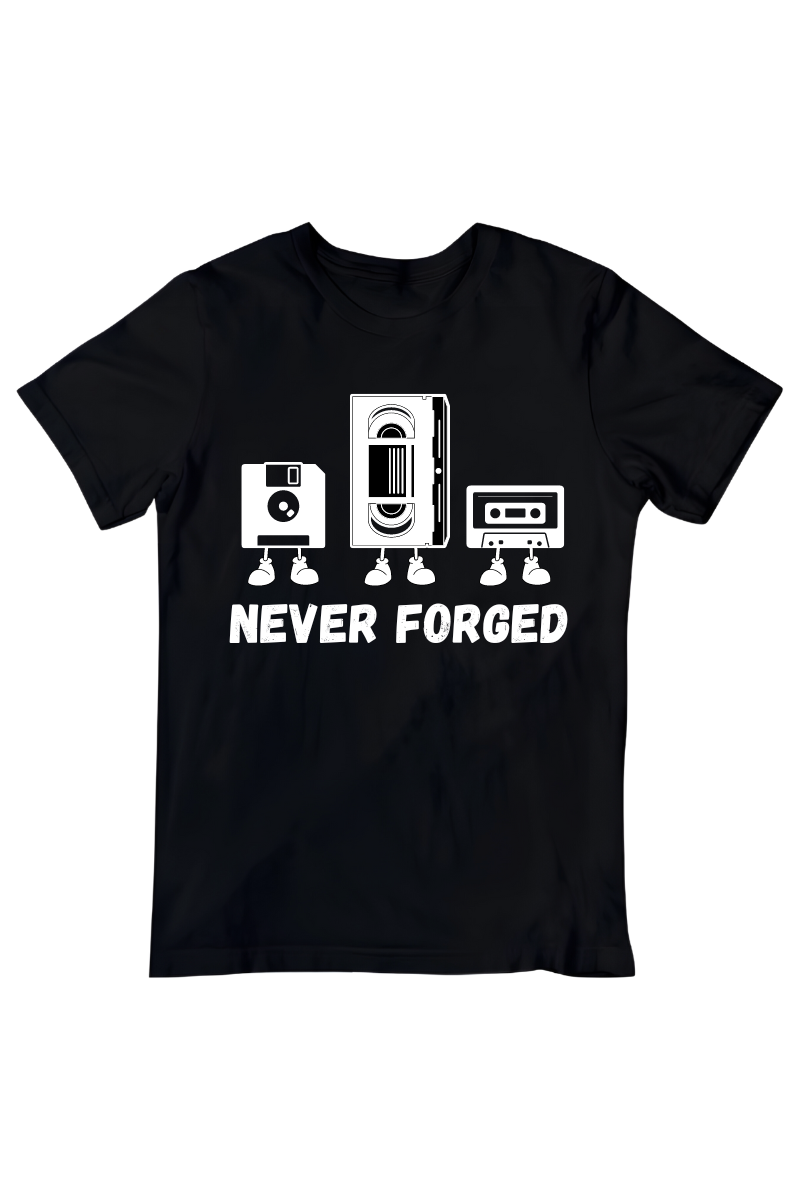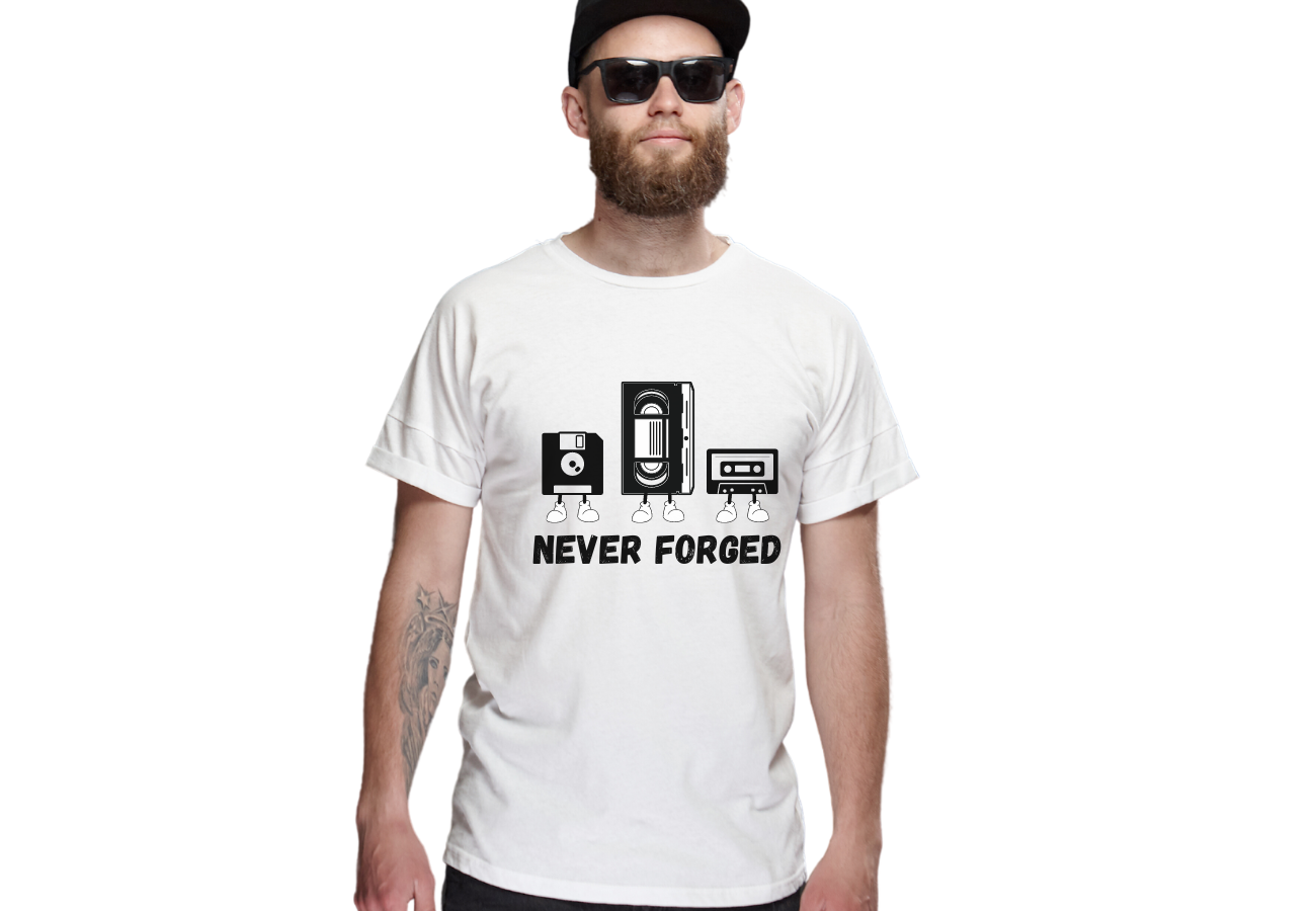 Odkryj czar przeszłości z naszą koszulką "Never Forged". Ta wyjątkowa koszulka przenosi nas w świat lat 90', ożywiając nostalgiczne wspomnienia. To hołd dla tych, którzy cenią klasyczne technologie i niezapomniane chwile spędzone przy ulubionych dźwiękach i filmach.