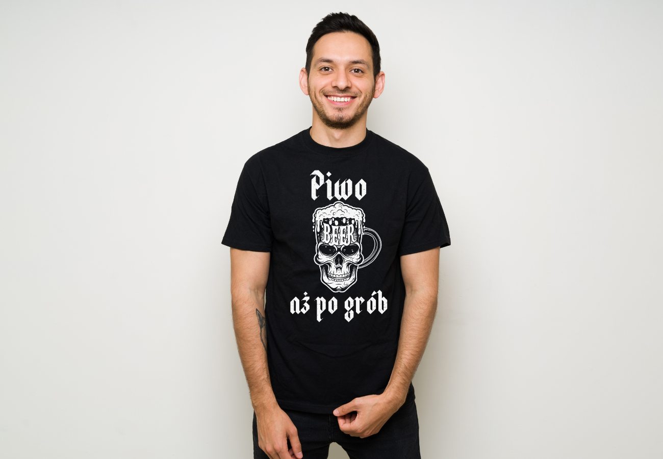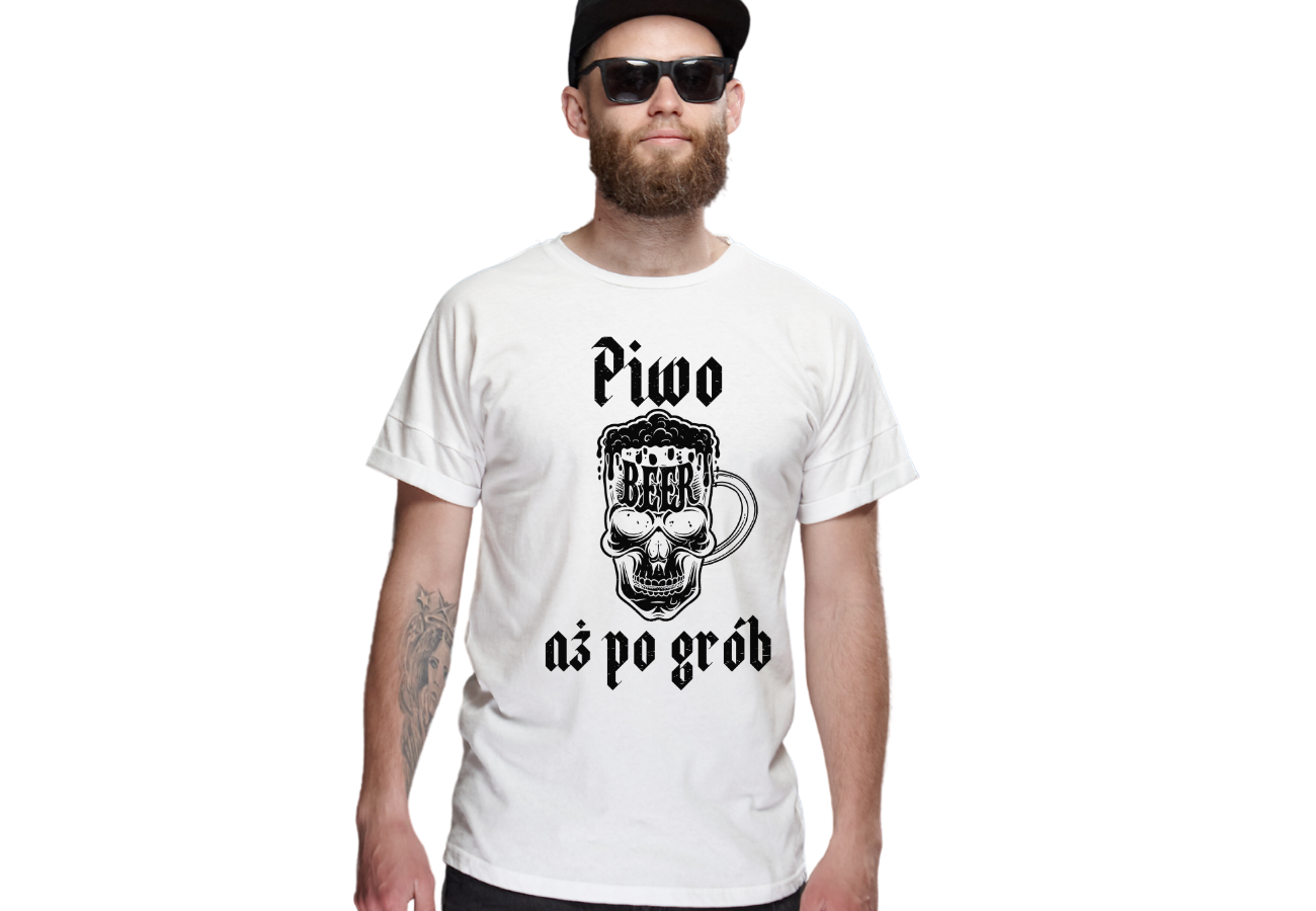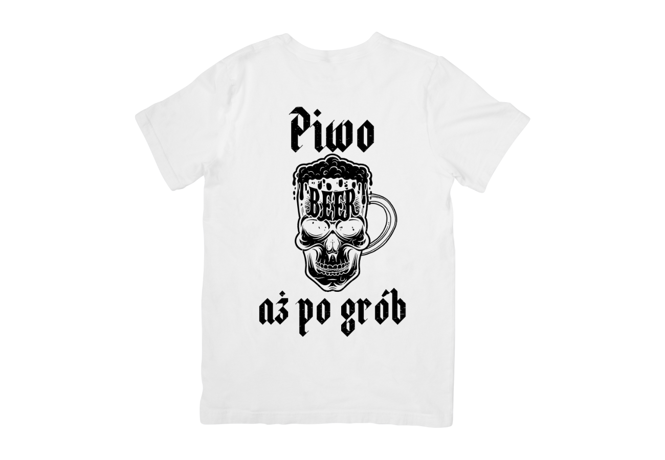 Koszulka "Piwo aż po grób" to perfekcyjny wybór dla tych, którzy cenią sobie dobry humor i kochają piwo. Z kuflem w kształcie czaszki i wyraźnym napisem, ta koszulka to nie tylko wyraz Twojej pasji do piwa, ale także Twój unikalny stylowy akcent.