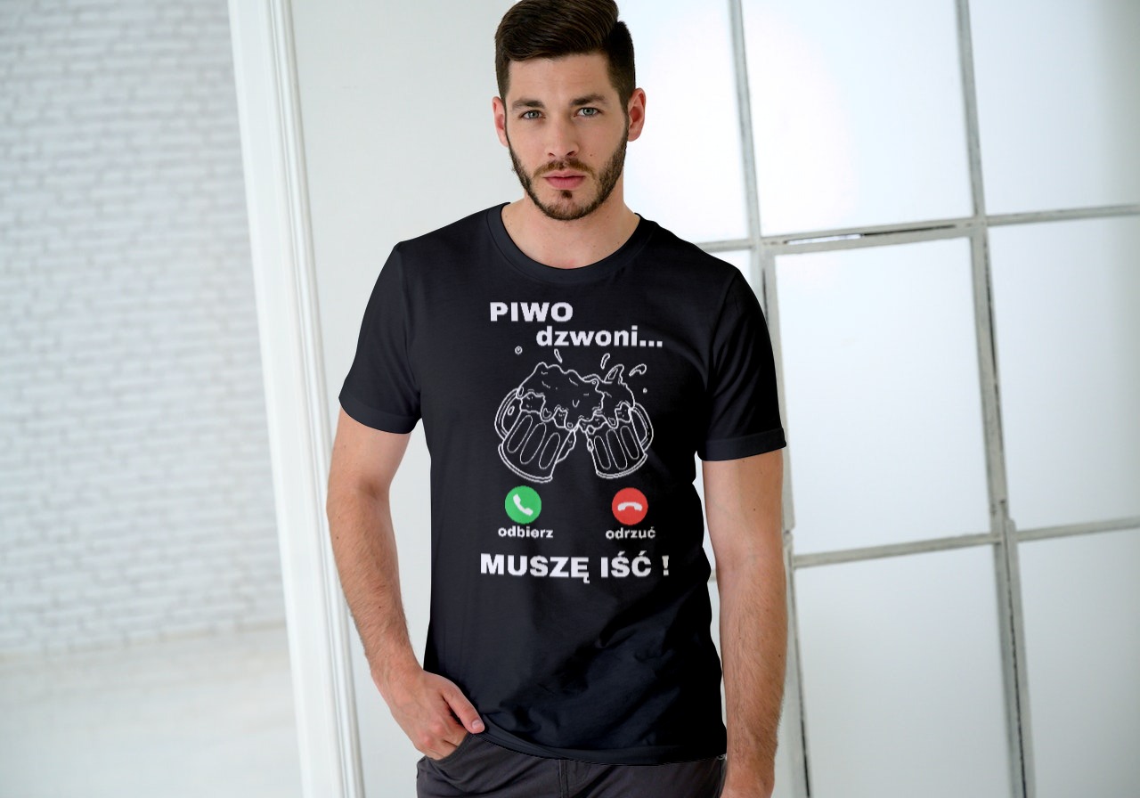 Koszulka "Piwo dzwoni Muszę iść" to idealna propozycja dla miłośników piwa, którzy doskonale rozumieją tę nieodpartą potrzebę. Ta humorystyczna grafika przedstawia zilustrowane piwo, które dosłownie dzwoni, wskazując na konieczność przerwania wszelkich aktywności i podjęcia pilnej misji spożywania ulubionego napoju.Ta koszulka