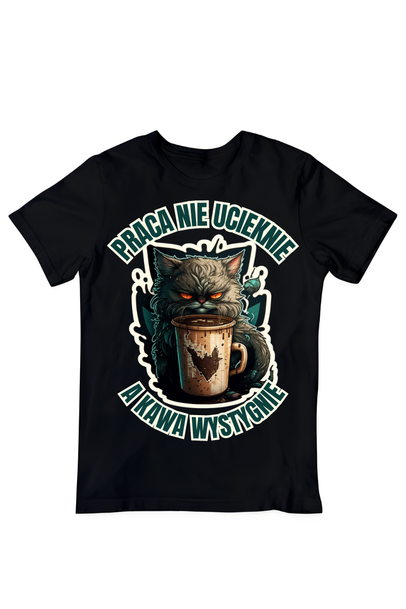 "Praca nie ucieknie, a kawa wystygnie" to właśnie ta koszulka przypomina nam, że nawet najtrudniejsze zadania mogą poczekać, ale nasza ukochana kawa nie zawsze będzie gorąca. Kombinacja humoru i grafiki z uroczym kotem sprawia, że ta koszulka to idealny wybór dla tych, którzy kochają kawę, czarne koty i śmieszne przekazy o życiu. Włoż tę koszulkę i dodaj trochę zabawy do swojego dnia!