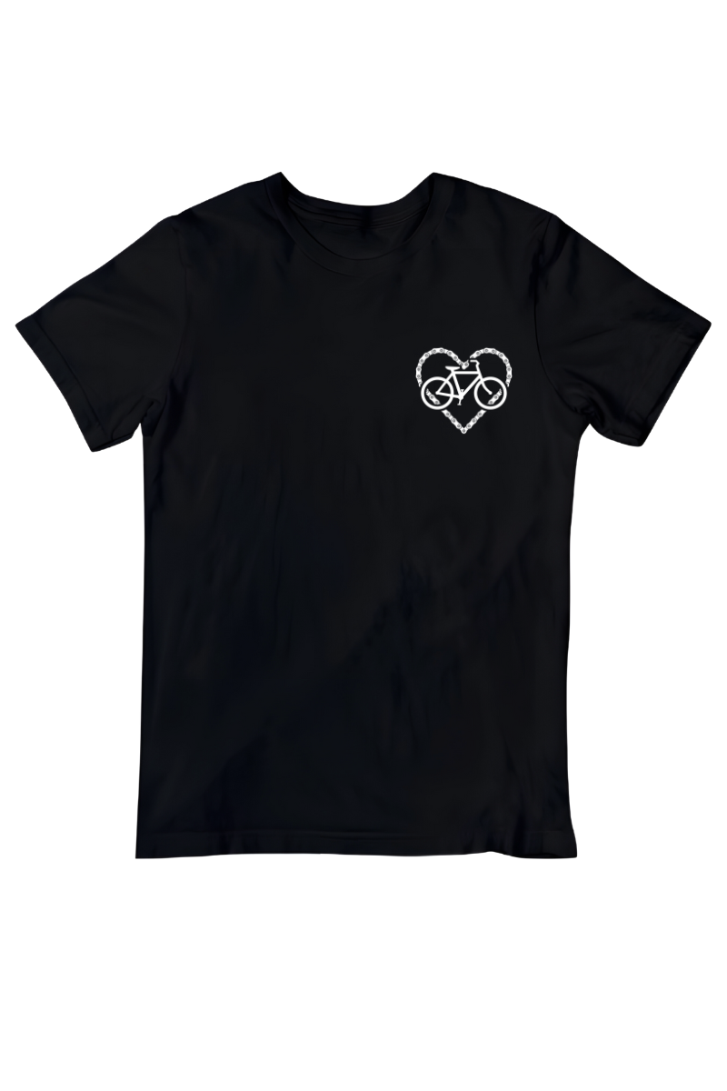 Koszulka "Rower w Sercu z Łańcucha" to idealny wybór dla miłośników jazdy na rowerze. Wyjątkowy design z sercem utworzonym z rowerowego łańcucha świetnie oddaje pasję do dwóch kółek. Pokaż wszystkim, że rower jest bliski Twemu sercu!