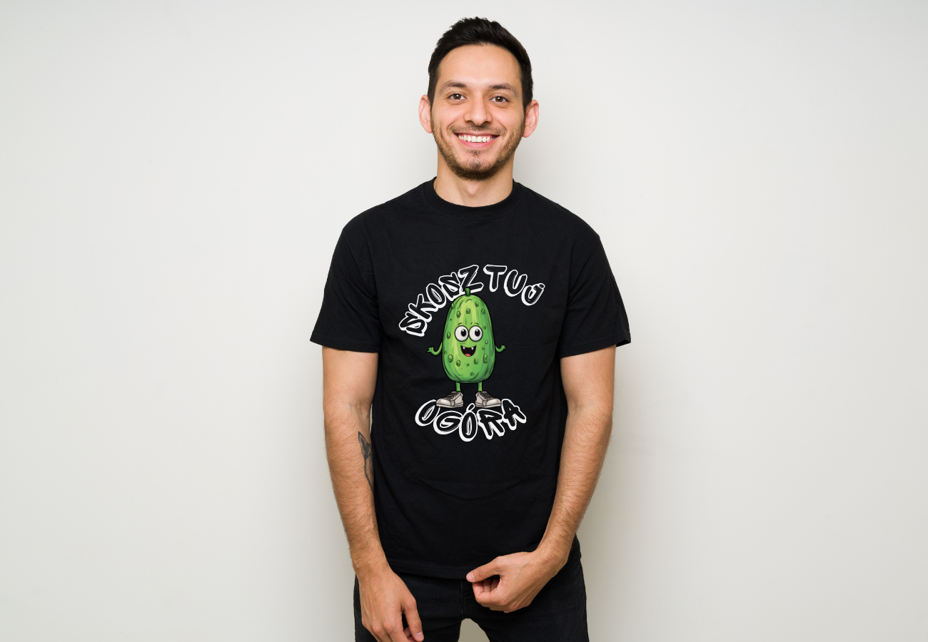 Ta koszulka z uśmiechniętym ogórkiem i hasłem "Skosztuj Ogóra" to idealna propozycja dla tych, którzy kochają zabawę i humor! Dodaj odrobinę śmiechu do swojej garderoby i spraw, by każdy dzień był pełen radości!